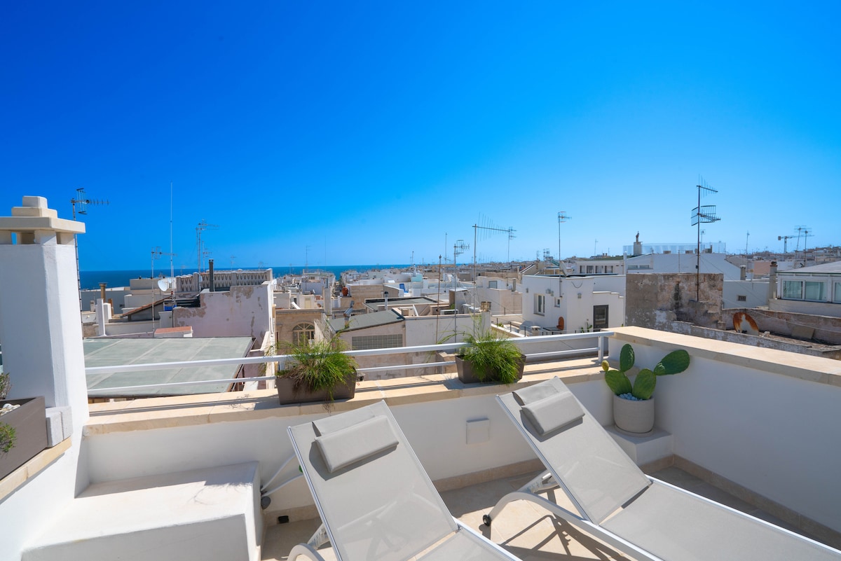 Cozy, modern and bright ROOFTOP, in the center of Polignano a Mare. 4 beds in 2 bedrooms with private bathrooms, courtesy set and hairdryer. 3rd floor without elevator. Free Private parking. N.B. In case of booking of 2 people, the second room and the bathroom will be closed for a better management of the spaces. If even a single couple wants to use the two rooms, it will be necessary to select 3 guests. City tax 2 € p.p. per night.