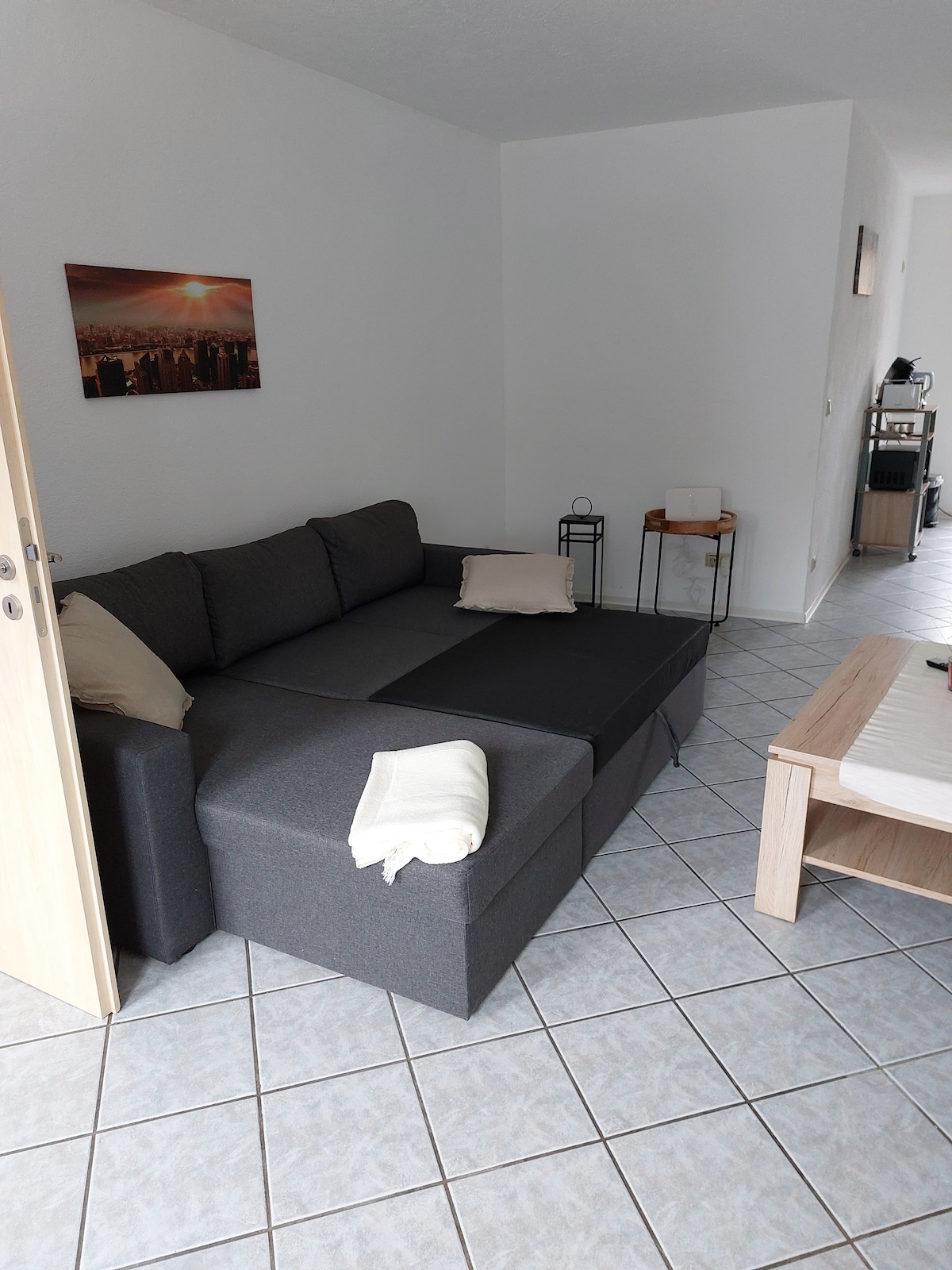 The quietly located, well-kept and bright apartment (28 square meters) in Trier-Ruwer-Höhenlage is located in the basement (1 floor down) of a 5-party house with views of the countryside. In the entrance area, there is a small kitchenette. From here you can go straight to the bathroom with shower/toilet. To the left - separated from the kitchen area - is the spacious living/sleeping room. With a cozy sitting area, smart TV and Wi-Fi, you can relax very well here close to nature.