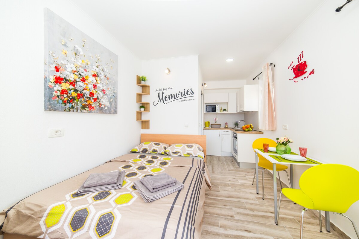 Modern one bedroom apartment “Pomalo” with balcony! Renovated 2018! 50 square meters, fully air-conditioned and equipped, furnished kitchen, Wi-Fi, queen size bed, and very comfortable double and single sofa beds. The apartment is 15 min walk from the ferry, main bus/train station as well as fabulous tourist attractions, such as Diocletian's Palace and Riva promenade and 10 min walking distance from the fabulous blue flag Bacvice beach, and popular Ovcice and Firule beaches.