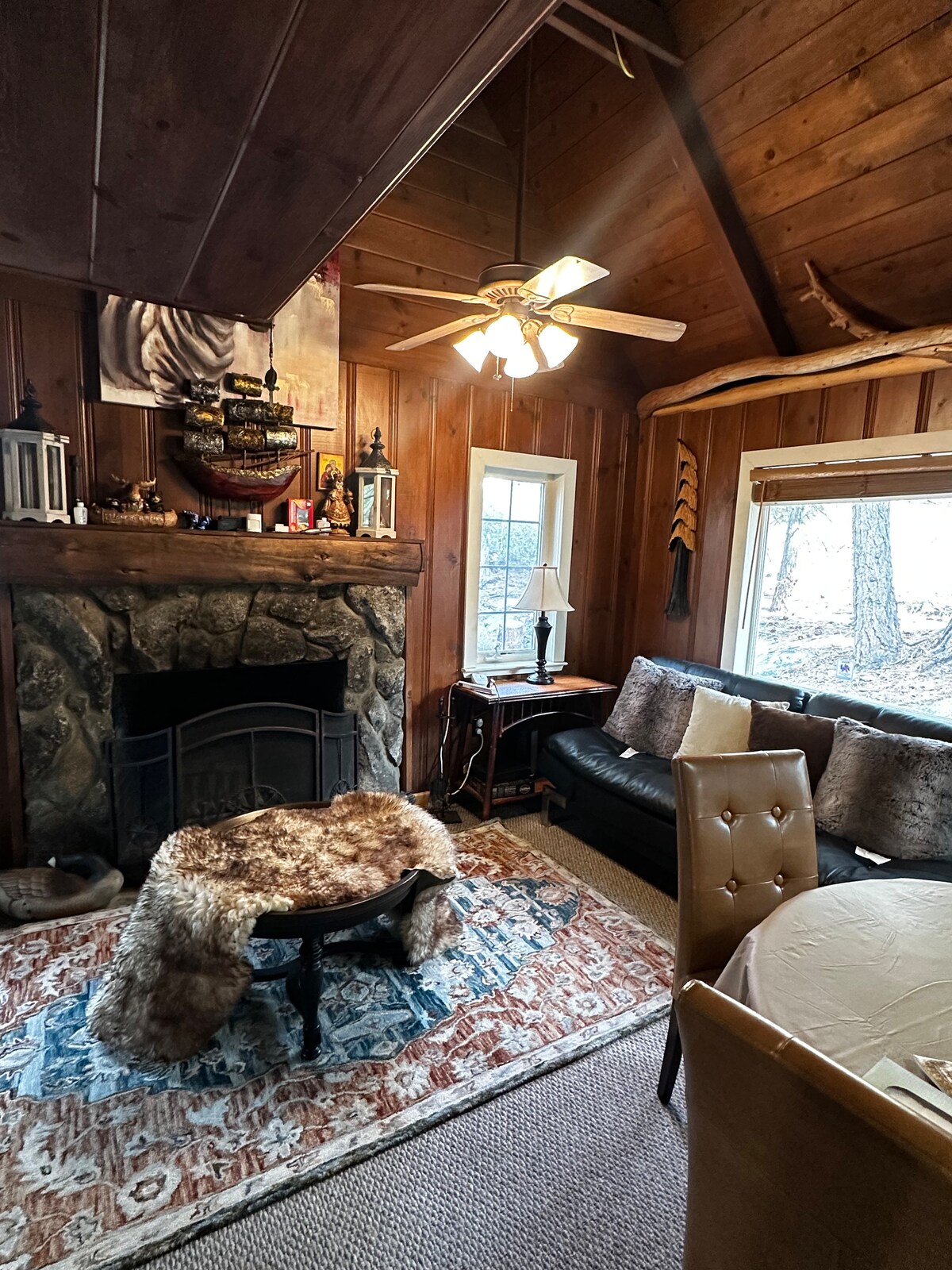 5 mi to hwy 80, 10 mi to Grass Valley. 96 to 535 mbps.EV-2 charger. $20 per dog per day. $20 for use of hot tub, per stay. Boat dock 1 mile.Your private side of cabin has private entrance into your own 3 rooms: LR/dining area, fireplace, 2 br and 1 1/2 bath. No kitchen but had small fridg microwave, coffee maker. bbq, outdoor stove. BR 1 Q bed, BR2 2 twin beds. LR has t.v. + Q Sofabed, armchairs and fireplace. Use of porch, back deck, fire pit.Very large parking area. Fully fenced.