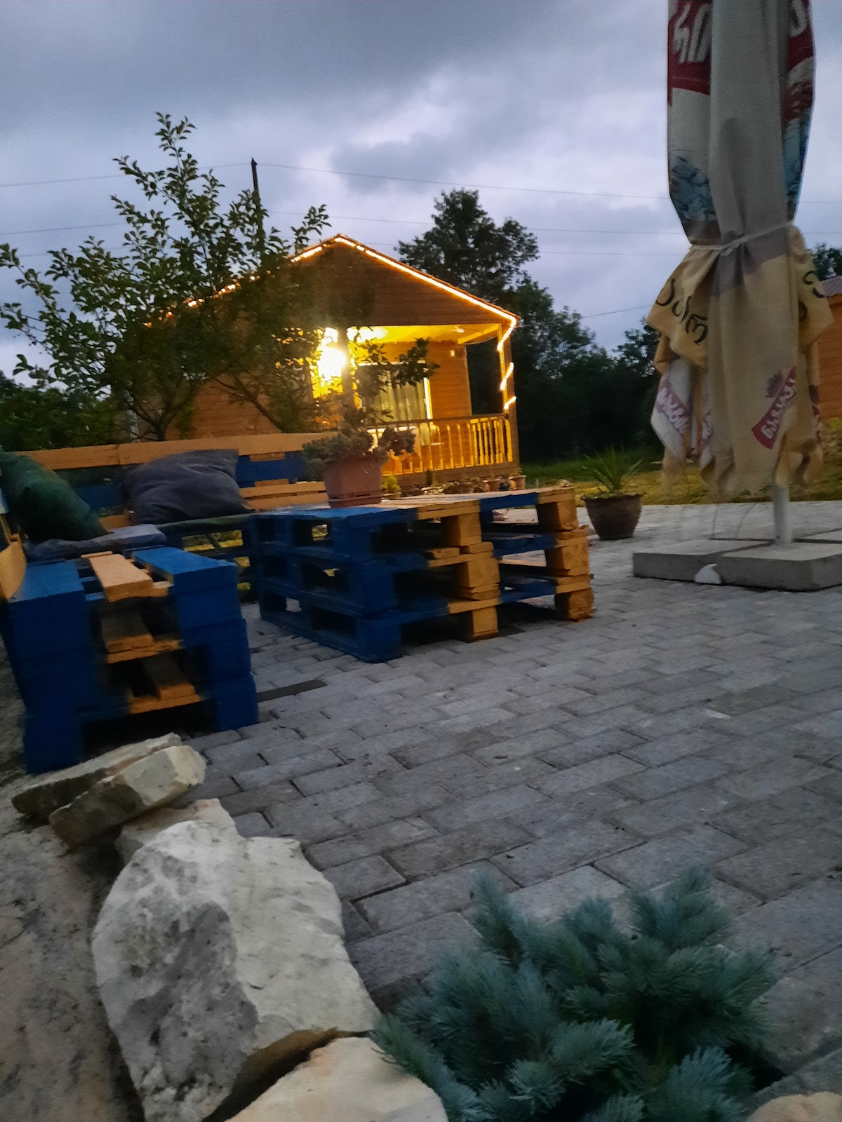 La Villetta offers peaceful & stylish space for spending memorable time with your family and friends. Private villa with 2 bedrooms, a fully equipped kitchen and 1 bathroom. Also bathtub in master bedroom. Towels, dental kit, shower equipment, slippers, bed linen are provided in the holiday home. Our property offers outdoor pool, outdoor sitting area with fire pit & firewood. Outdoor Wooden hot tub, imagine enjoying late night calmness with fire sounds and sky full of stars. 21 km from Tbilisi.