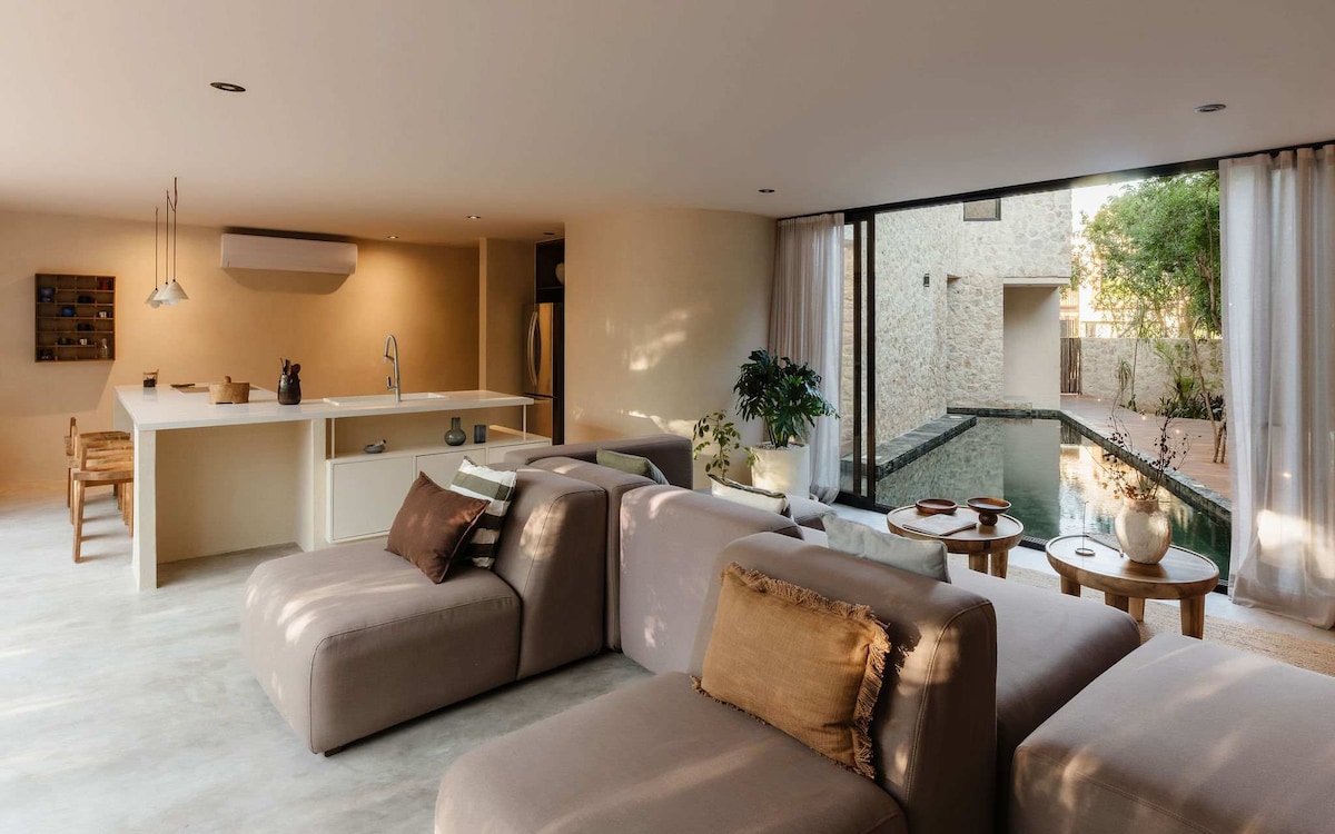 A Design-Forward Boutique Stay in Tulum - Thoughtfully designed luxury 2 bedroom apartment with high-end finishes - Architecturally curated spaces featured in design publications - Expansive resort-style common pool surrounded by lush jungle - Serene shared areas designed for relaxation and connection - Premium materials, modern lines, and elevated interior details - Filtered drinking water throughout the property - Large space over 2000sqf - Private garden pool and oasis - 24/7 Security onsit