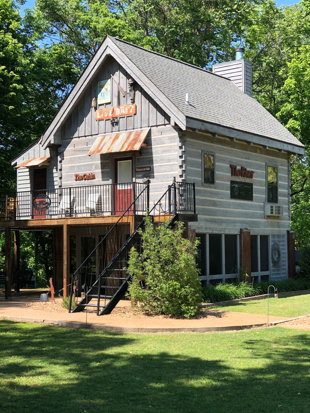Reel Life White River Cabin is an elevated log home with the entire underneath having a screened in porch. It sits on the bank of the river with stairs leading down for easy access. It is located just 5 miles from town and many area attractions. The Cabin has 2 bedrooms, one with a queen Tempur-Pedic , the loft has 2 twin beds and sleeper sofa in the living area. Windows in the main bedroom provide great river views. Whatever your idea of the "reel life" is, we are sure you will find it here.