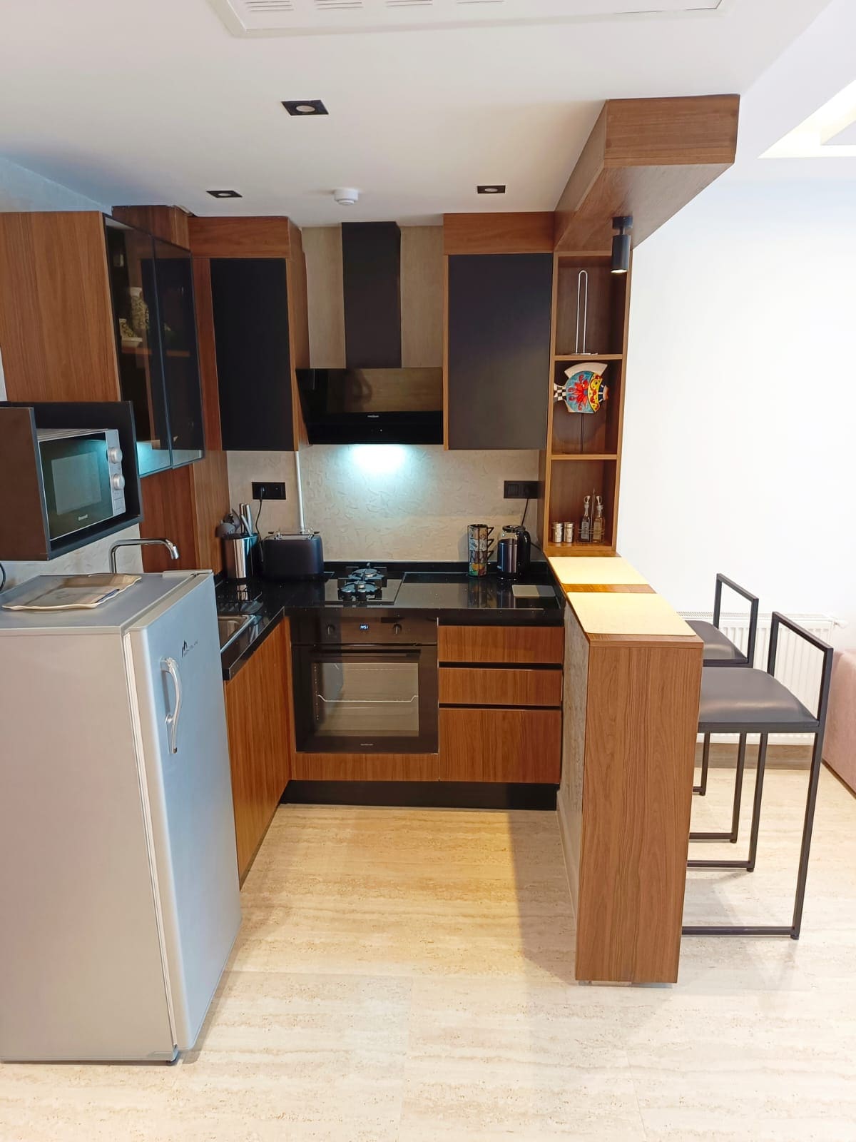 Luxury Apartment - All-Inclusive Premium Stay: Bedroom: with a king-sized double bed. Fully Equipped Kitchen. Entertainment: with two smart TVs, with beIN Sports and endless movies and shows with Netflix .... The apartment features both central heating and two separate air-conditioning units. Amenities: A swimming pool, a gym. Parking & Security:A secure underground parking. Ideal Location: Enjoy the convenience of being just 10 minutes away from both the airport and the city center.