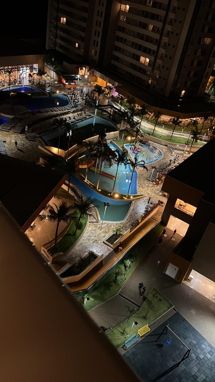 Flat ao lado do Thermas dos laranjais em Olímpia com cozinha Sala conceito aberto e cozinha americana dormitório com cama de casal, cama de solteiro, cama auxiliar e sofá cama na sala. excelente para toda família, serviço de hotelaria, piscinas aquecidas, piscinas climatizadas e piscina fria com bar molhado. saunas, parque aquático, sala de Jogos ,brinquedoteca, mini golf, quadra poliesportiva, atividades circenses quadra de beach tênis restaurantes, bares ,monitores, traslado para thermas