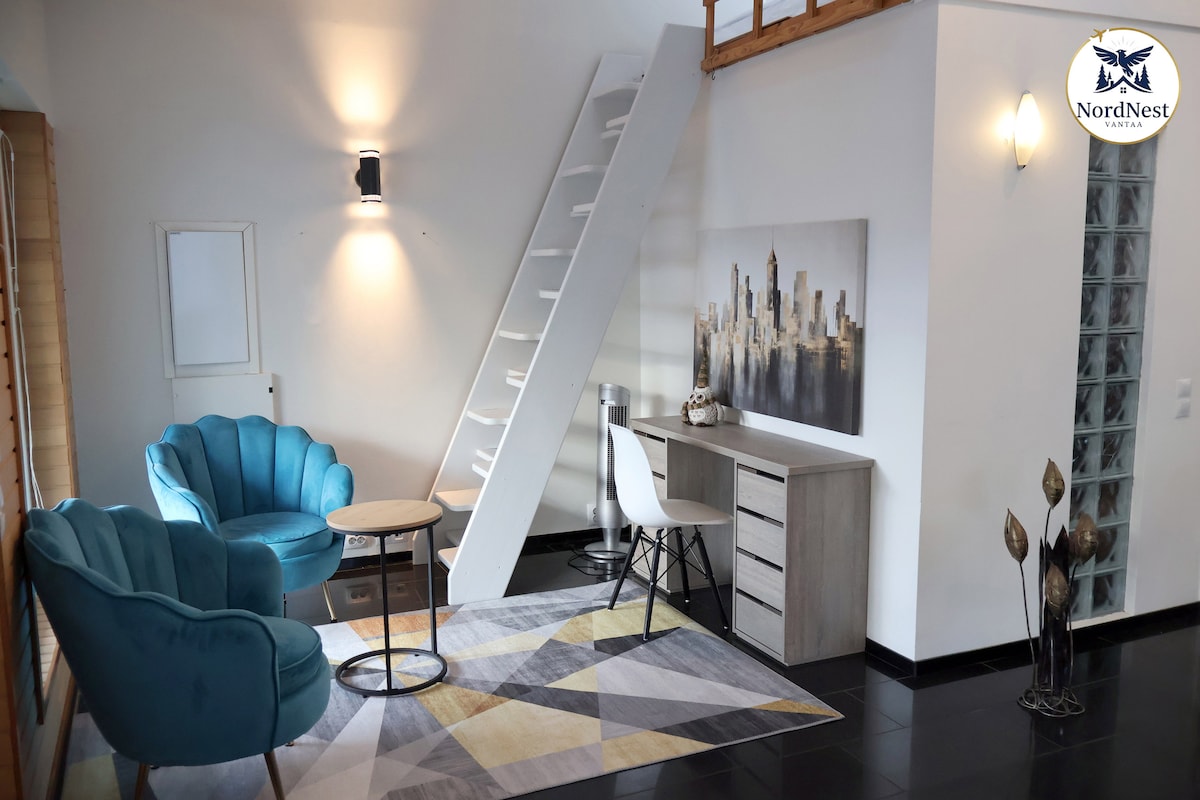 This gem is nestled near Pasila Station, right next to Central Park. A peaceful spot for relaxation. Only a 5-minute train ride to the heart of Helsinki. - 140 cm double bed and mattresses - Bed linen and towels - Access to plenty of comforts, including: sauna, a video projector, air conditioning, an electric grill, a smoker, and Philips Hue color lights. Location: - A 5-minute walk to Pasila Station, the Tripla shopping mall, and a dog park - 25-minute train ride to the airport