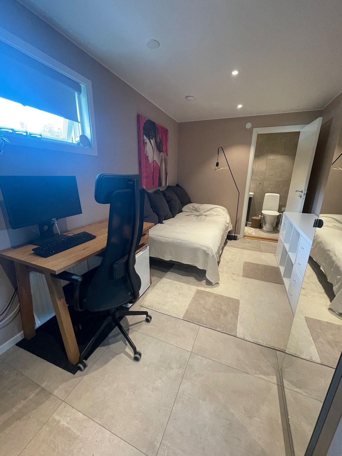Indulge in the charm of this Mini House offering the coziness of a hotel size room while ensuring your private retreat. The kitchen part od the mini house is equipped for light meal preparation (not suitable for heavy cooking). The tranquil neighborhood is complemented by a swift 18-minute bus ride to the city center directly from the place (Bus 25). Feel free to seek our advice on exploring and experiencing the best of Gothenburg. Max of 2 guests ( a baby can also fit).