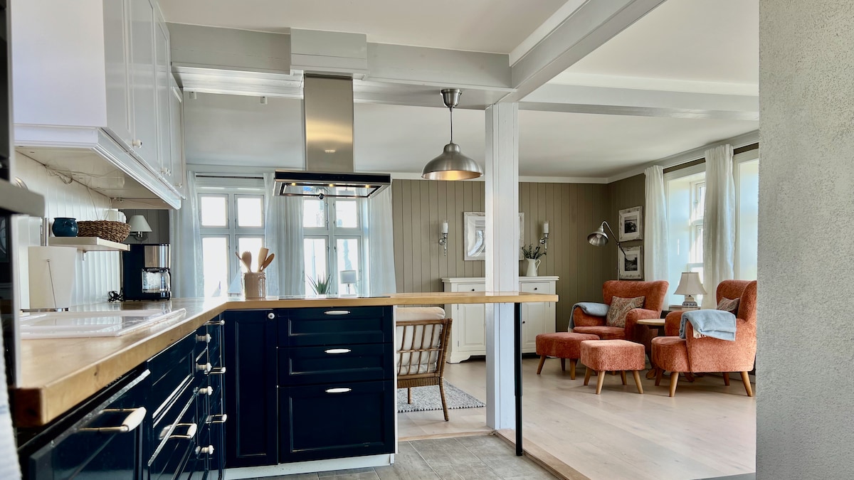 This charming home from 1880 is beautifully situated on the outermost row of Tangen, known for its historic white-painted wooden houses and narrow passageways. Enjoy three lovely outdoor areas and a fully stocked kitchen. The property lies just a few meters from the sea, with public swimming area Gustavs Point just below and a lovely southern view towards the historic Stangholmen Lighthouse. Welcome to "The Pearl by the Point"!