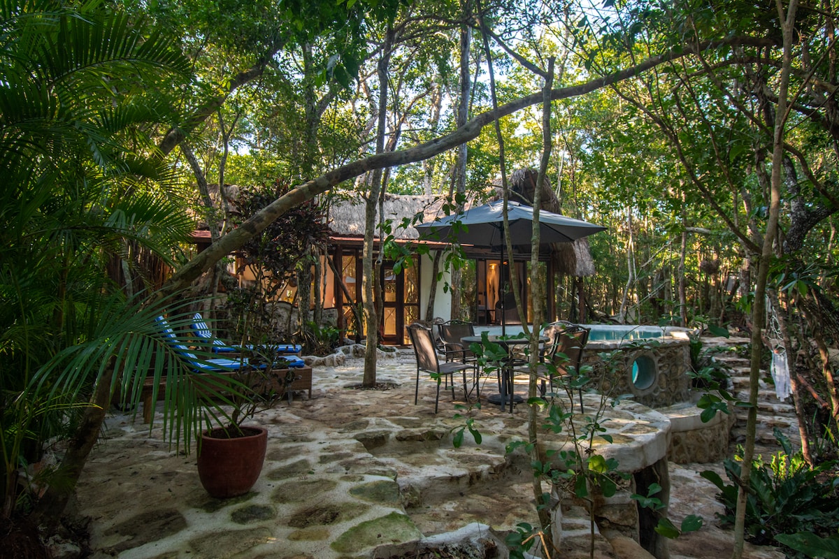 Experience the most beautiful and peaceful life in the Maya jungle of Tulum. This apartment has local architecture blended with modern interior design. Private pool by the bedroom will feel like you own a cenote. Connect with nature, listen to wind and the birds. Romantic and relaxing environment. Just 10 minutes away from the beach, 5 minutes from Xel ha park, 20 minutes from Tulum downtown, 45 minutes from Playa del Carmen, 10 minutes from Cenotes Casa Tortuga and much more.