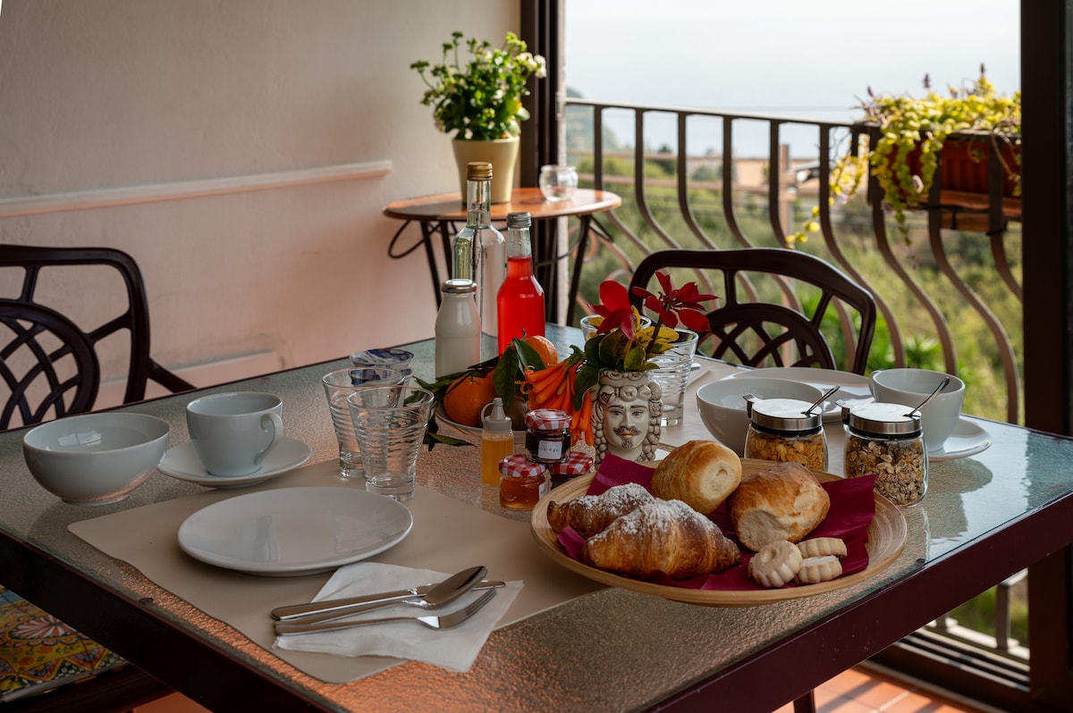 Etna apartment, ideal for 2/3 guests, is on the first floor of "Finestra sul mare". It has a kitchenette, bathroom with shower, Wi-Fi, TV, A/C, and safe. Its highlight is the private terrace, perfect for breakfast or dinner with sea view. The closable veranda allows enjoying the panorama even on cooler days. Free internal parking is available; the B&B hosts up to 12 people. A private vehicle is recommended.