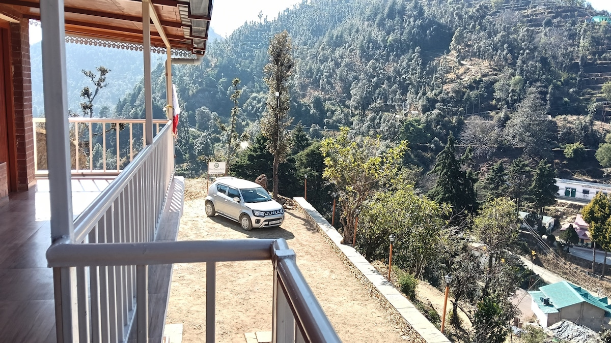 A Private Haven of Rustic Luxury in the Heart of Bhimtal. This cozy home offers a blend of comfort and nature which is ideal for guests looking for mountain views, fresh air, homely vibes, clean interiors, and easy access by car. Escape to a world of towering trees and tranquil ambiance. Unwind amidst nature's symphony.. This private villa is a tranquil holiday haven, offering a unique blend of rustic elegance & modern comfort Disconnect, reconnect, and immerse yourself in pristine beauty..