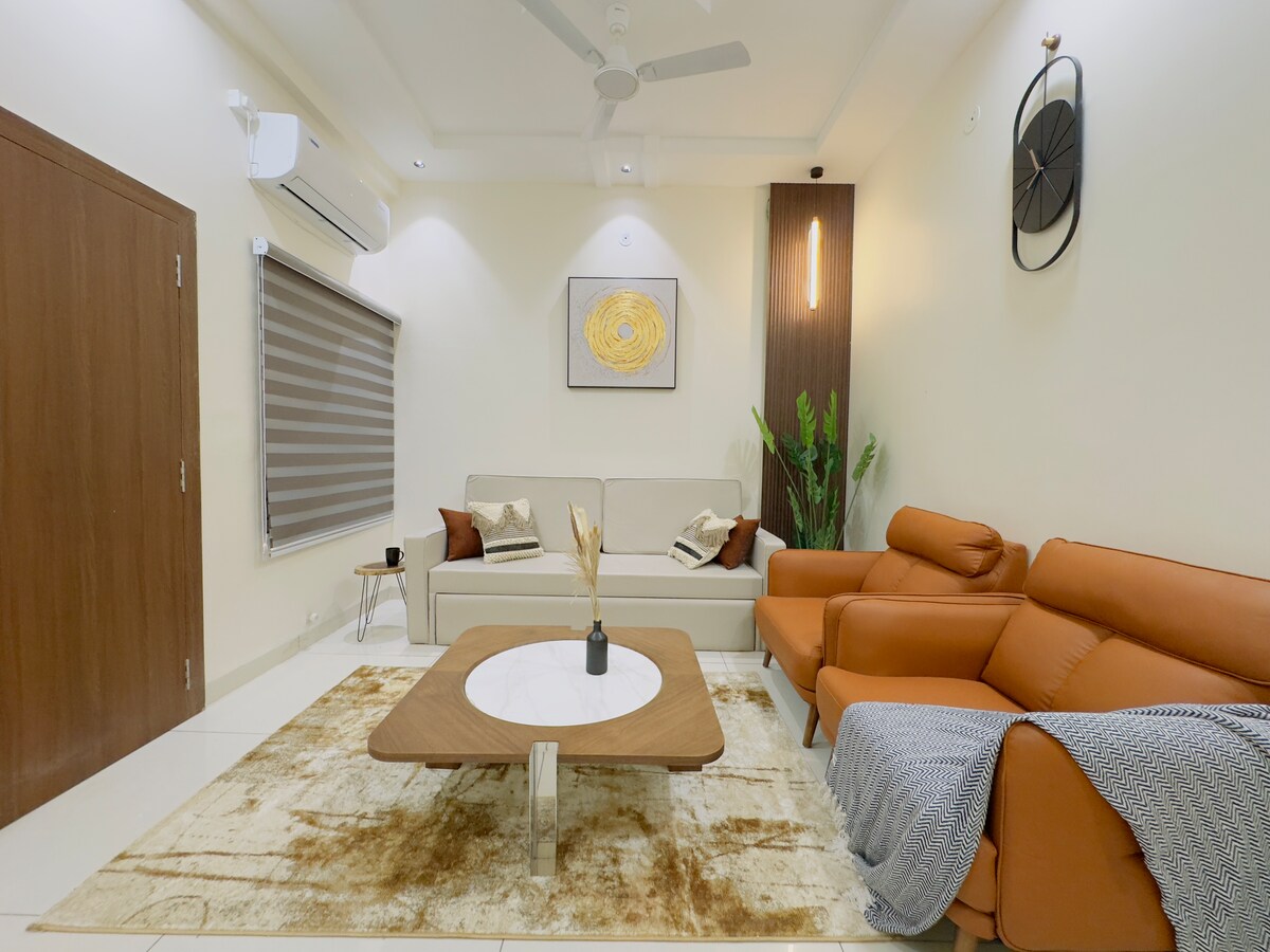 Prithvi - Luxury 2BHK apartment curated by Suhan Homes🍃 Immerse yourself in grounded luxury at this spacious 2BHK inspired by Prithvi, the essence of Earth. Adorned in soothing greens and natural textures, the space radiates warmth, balance, and calm. Enjoy airy rooms, cozy earthy tones, and serene garden views — a perfect blend of comfort and nature. Ideal for mindful travelers seeking peace, connection, and rejuvenation amidst tranquil elegance.This apartment is located on the ground floor!