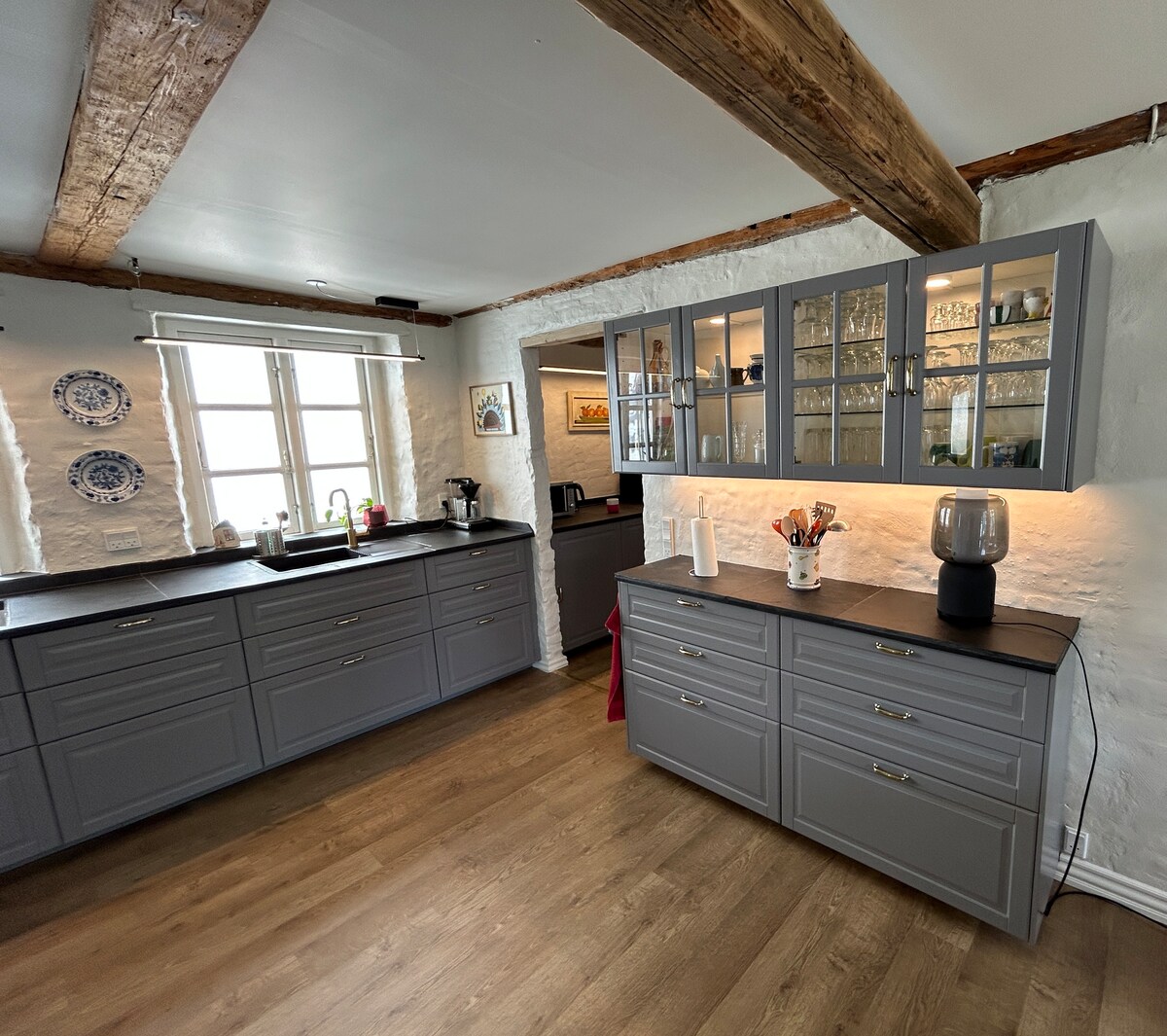 Cozy annex/backhouse with a private living area, sleeping space, and kitchenette – Please note: Bathroom, kitchen, and a small gym are located in a separate building just 10 meters away. Outdoor area with a fire pit and grill, peace and quiet. We live on the farm ourselves in case you need anything. An ideal spot for both a weekday escape and focused work. At the same time, close to the Higway, so you can get on quickly.