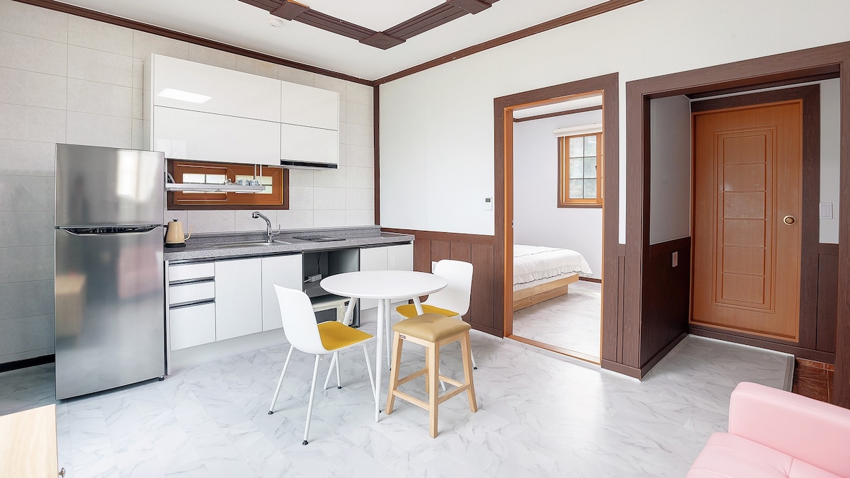 Hello. We are Onda, a company that researches and provides a variety of relaxation spaces. We hope that everyone who stays here will have a comfortable and happy time. [Accommodation Introduction] Stay In 'Add more memories' Private accommodation with sea and forest, and a white spa, We will be a small comma in your tired daily life. Enjoy the warm sunshine and sea at 'Anmyeon Do Chuoek More'. This accommodation does not allow dogs. [Room type] Studio type (double 1 + kitchen + toilet 1) * Bedding is provided according to the number of people booked.