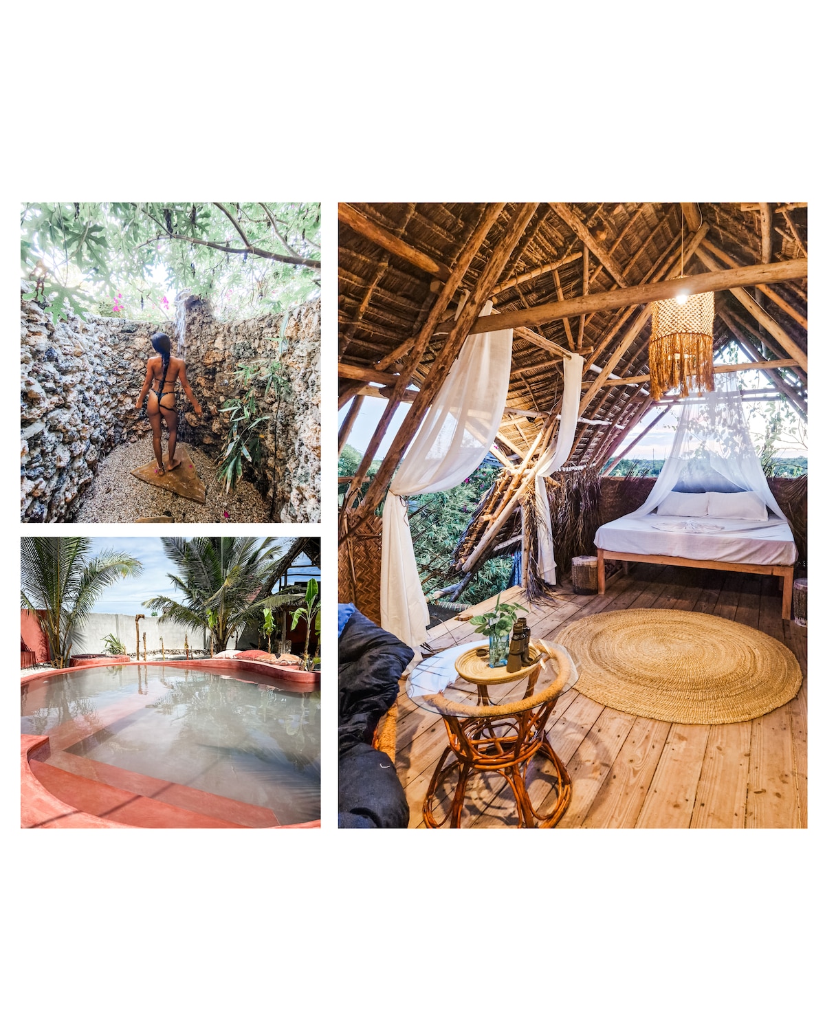 Eco-luxury jungle nest for soulmates & seekers. Float above the forest in this handcrafted treehouse with open-air coralstone bathroom, stargazing net, & waterfall shower. Enjoy vegetarian breakfast, Flower Tent Pool, spiritual add-ons & deep jungle peace – just minutes from Jambiani’s beaches. A sacred hideaway for honeymooners, lovers & wild hearts ready to reconnect with nature & themselves.