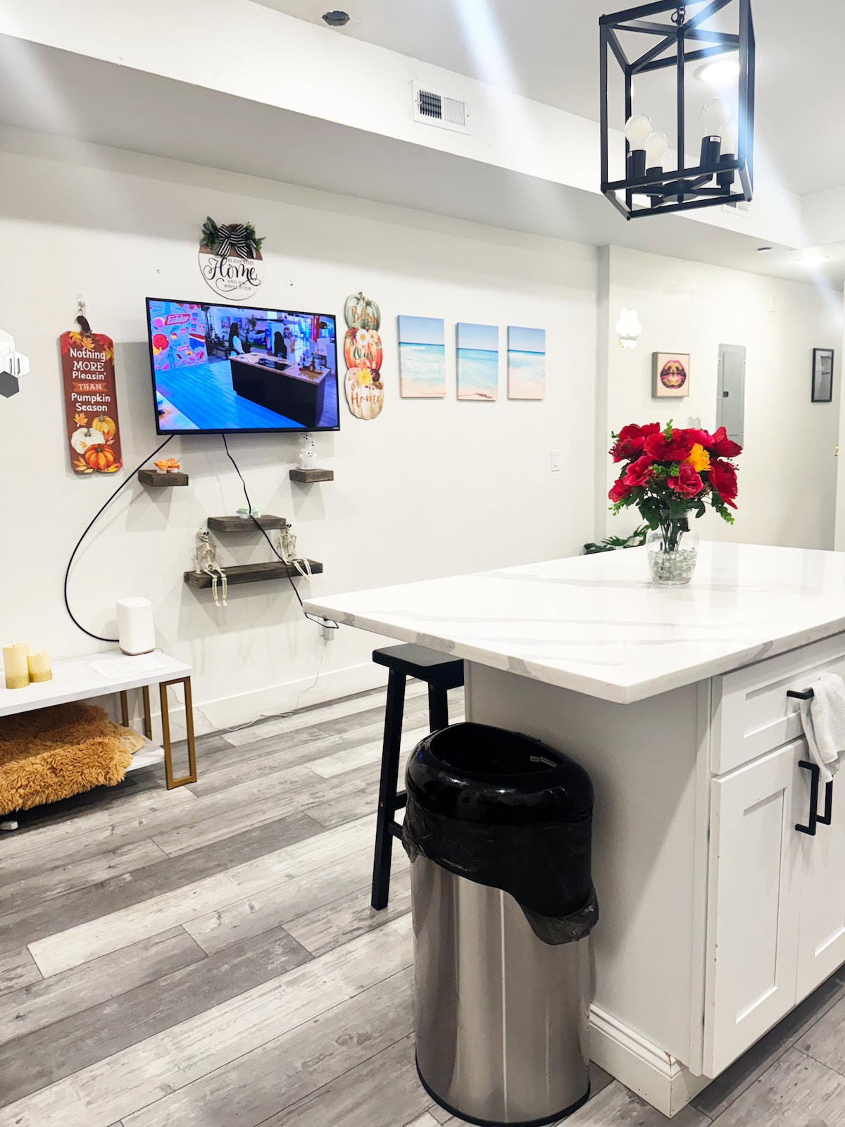 Welcome to The Emerald Room – A Luxe Urban Retreat A stylish 3-bedroom, 3-bathroom retreat with rich emerald, gold, and black accents throughout. Each bedroom features its own full bath for added privacy, while the open-concept living space and modern kitchen create the perfect setting to relax or entertain. Step outside to your private patio and unwind in comfort and style. A unique, elegant stay awaits. Perfectly suited for families, couples, or groups looking for a unique and elevated stay.