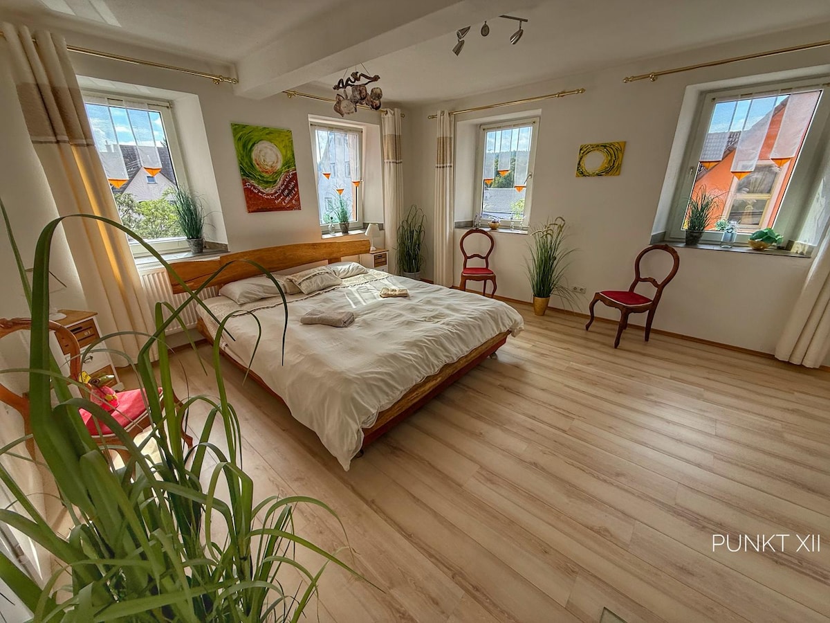 The luxurious Essenz Apartment in Hof offers maximum comfort for solo travelers, couples or business travelers on 25 m². Highlights include the king-size box spring bed, a walk-in rain shower, a 55-inch TV with streaming services, a productive workspace and super-fast Wi-Fi (330 Mbps). Free private parking right in front of the house is also included. Clever design with custom-made furniture and a small refreshment corner complete your stylish stay.