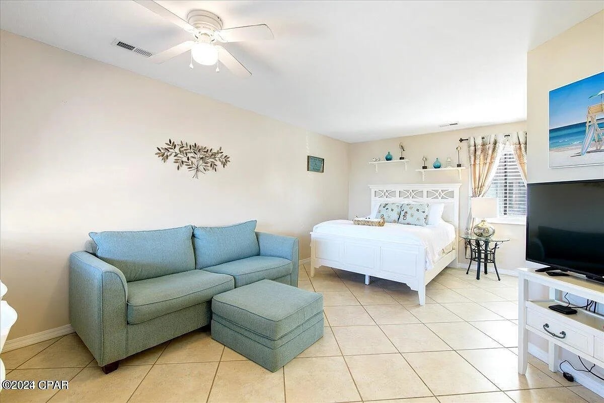 Welcome to your ultimate beach getaway! This luxurious second-floor unit offers the perfect blend of comfort, style, and convenience. Boasting peek-a-boo water views of the bay across the street, you'll start each day with a glimpse of paradise. Just a 9-minute drive from the pristine white sandy beaches and St. Andrews State Park. Close to the marina and dining hotspots. The property features its very own pickleball court, perfect for some fun and friendly competition during your stay!