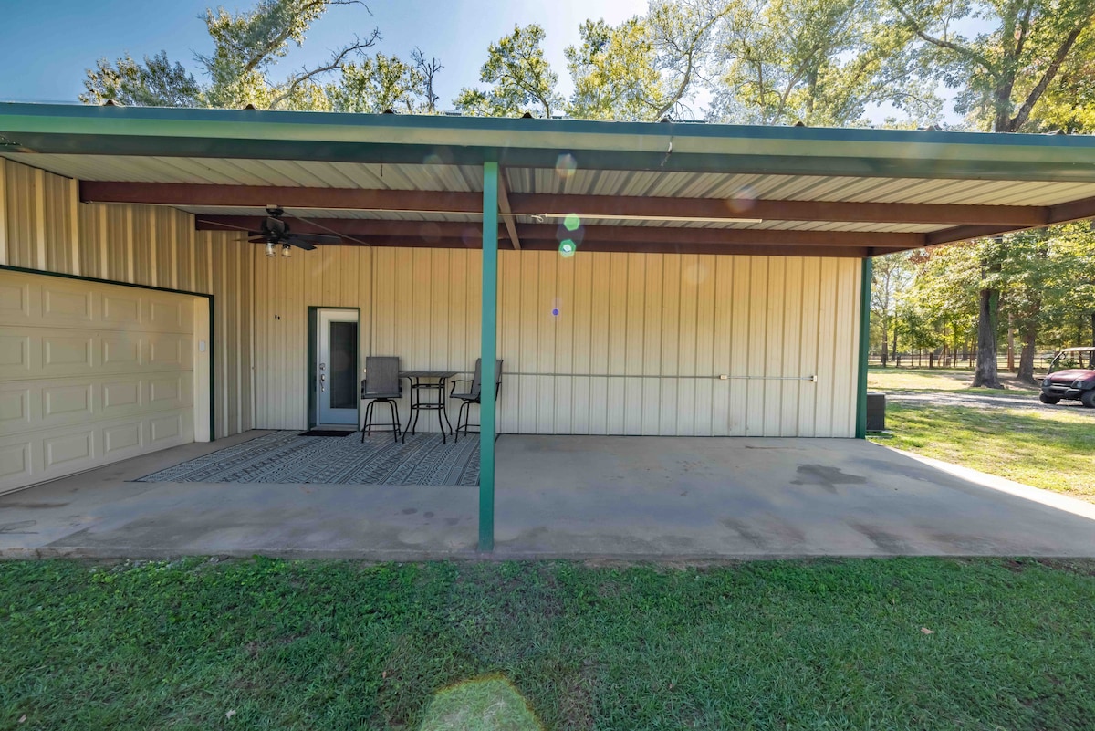Take it easy at this unique and tranquil getaway. Enter a gated entrance onto our private property just minutes from Gladewater's antique district. Whether you are visiting family or coming to shop, this charming Cottage offers safety and security where you will feel right at home. We have ample parking space for a trailer or U-Haul. This home is equipped with a generator in case of a power outage. We would love for you to be our guest!