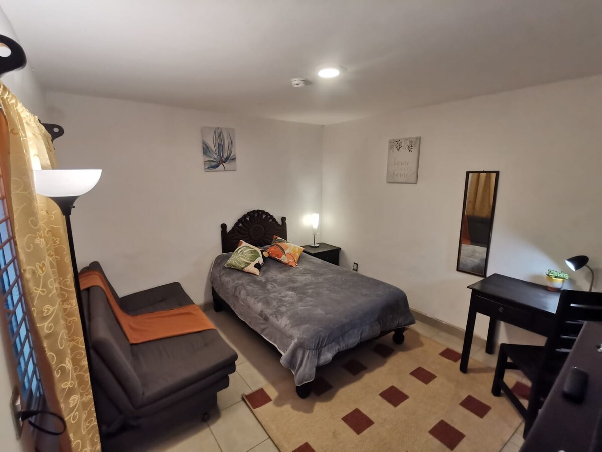 Enjoy the beautiful city in this quiet and central accommodation. You will be 5 minutes from the historic center of the city, less than 10 minutes from the unmissable National Park and only 2 minutes from the San Pedro factory. A few steps away from you there is a fruit shop, grocery store and pharmacy. In the accommodation we leave you some recommendations of tourist places and to start your day well coffee, tea and cookies, We want you to feel at home in Uruapan, Michoacán. WELCOME!