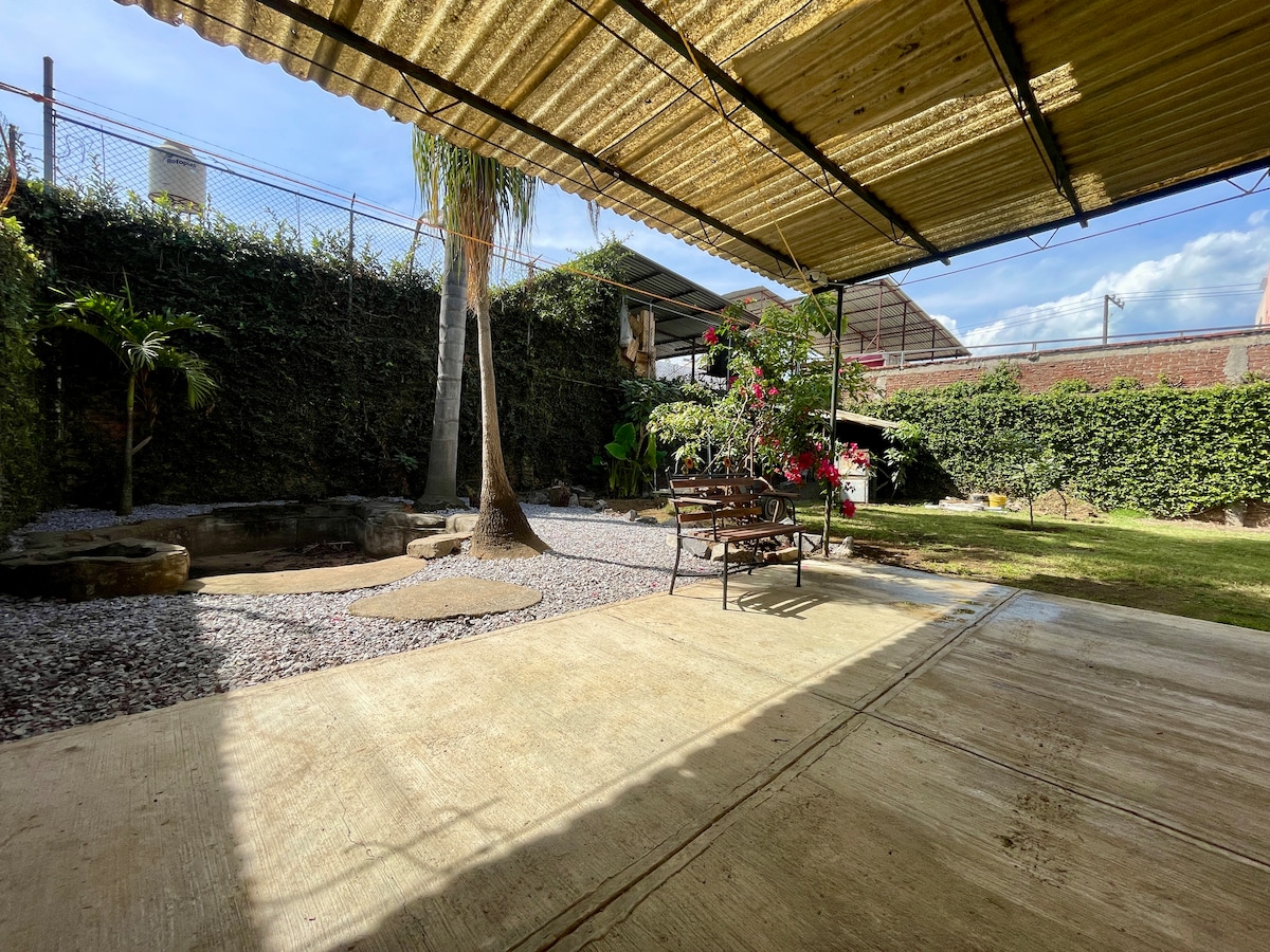 Disfruta de una estancia cómoda y segura en pleno centro de Uruapan. Nuestra casa cuenta con cochera techada, terraza amplia y todo lo necesario para sentirte como en casa. Ubicada a solo 3 cuadras del corazón de la ciudad, estarás a pasos de farmacias 24 hrs, OXXO, mercado de antojitos, iglesias, bancos y más. Ideal para familias, parejas o viajeros de paso.