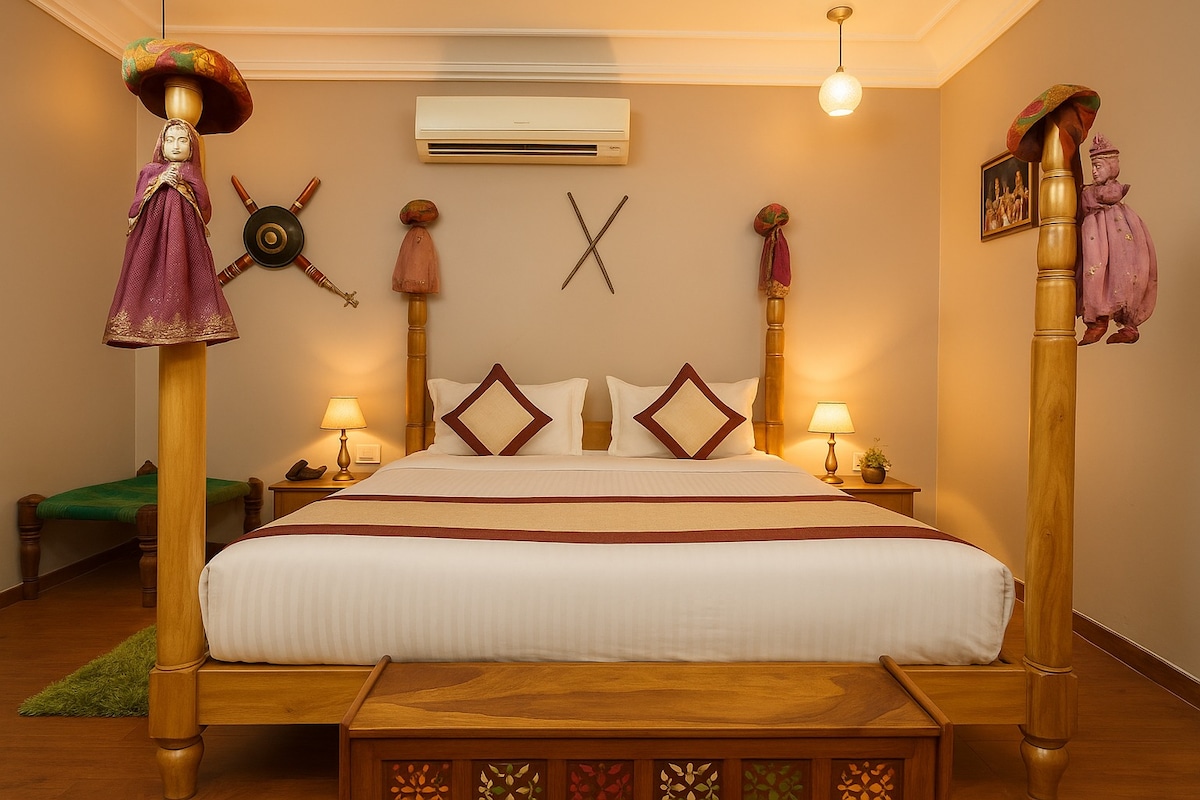 We have 9 luxurious rooms at the same space .You can check them out The Hues, Materials and Interiors are Meticulously selected for a Soothing and Healing Stay. Mangalmayee - a 113 Years Old Lifestyle Legacy Brand - presents a Fine Blend of Elegance and Comfort. Located at the heart of Pink City !