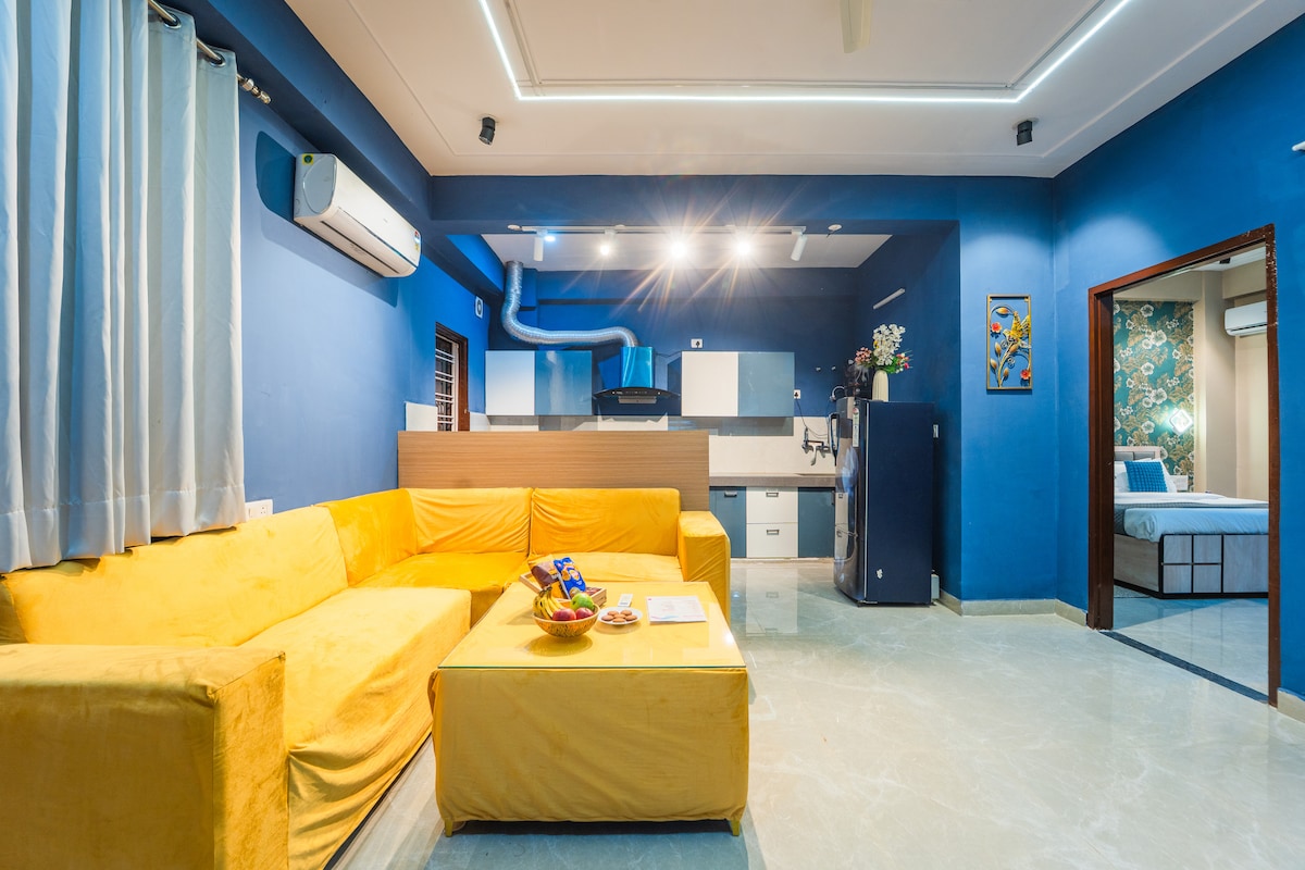 An artistic space thoughtfully curated .Tucked away from the hubbub of the city.This luxury two bedroom apartment comes furnished with a spacious living room designed to Netflix & Chill.Get lost within yourself as the aesthetically lit corners of the apartment embrace you in a warm hug. Enabled with all major amenities and comfort , We have kept everything in mind from chic high end bedroom, To the best Netflix n chill setting.This apartment doesn't fail to impress its guests.