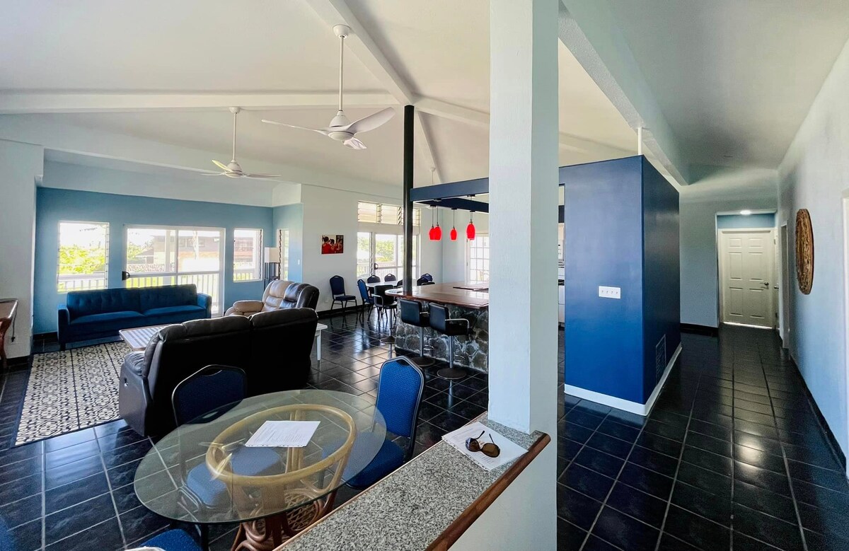 Sadie’s Pool House is a 5-bedroom, 3.5-bath home with a private swimming pool, ideal for families or groups traveling together. The home is arranged over two levels with separate living areas and kitchens, offering plenty of space to spread out. Conveniently located in residential Fogagogo village, just minutes from the airport and major shopping areas. Guests may also enjoy complimentary beach and pool access at Sadie’s by the Sea during their stay.
