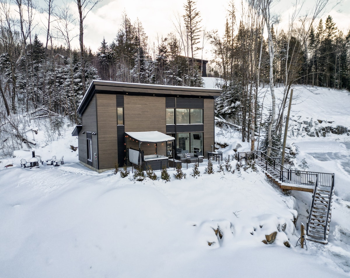 For your vacations choose the Chalet Horizon, an Eden in nature with a view of the mountains ♥ You will appreciate the chalet thanks to: ✷ Semi-private beach 5 minutes away ✷ Large private land, totally surrounded in pure nature ✷ Large bright windows with a view of the horizon ✷ Luxurious and comfortable spaces ✷ Spa open all year round ✷ Terrace equipped with a BBQ and gas fireplace ✷ Smart TV with speakers ✷ Indoor cozy gas fireplace ✷ Foosball table ✷ Wine bar
