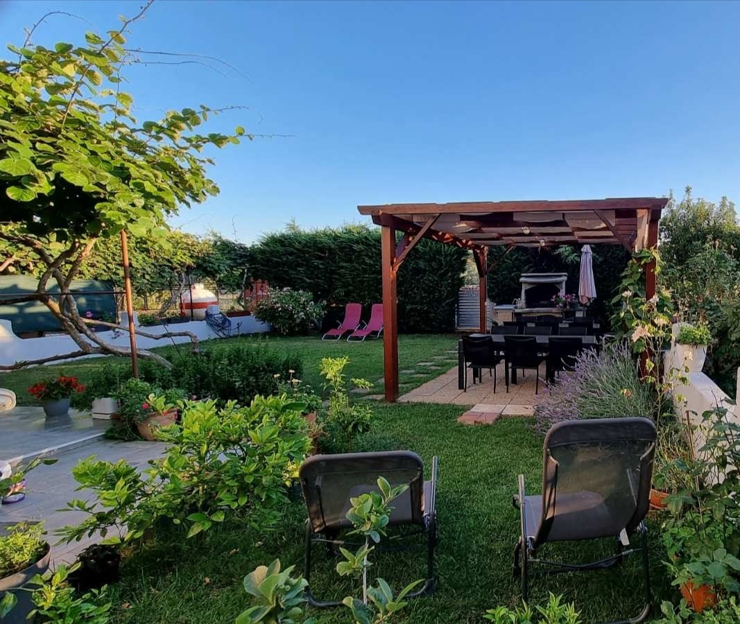 *** Spacious 200 m² house set on a 2000 m² private green garden with stunning sea view *** It accommodates 6+1 guests. The house is divided into two separate units, this unique layout allows two families or groups to stay together while still enjoying a high level of privacy, as each unit has its own entrance. The house features 3 bedrooms, each with its own en-suite bathroom and air conditioning. Guests can enjoy two comfortable living areas, two spacious terraces, a fireplace with barbecue.