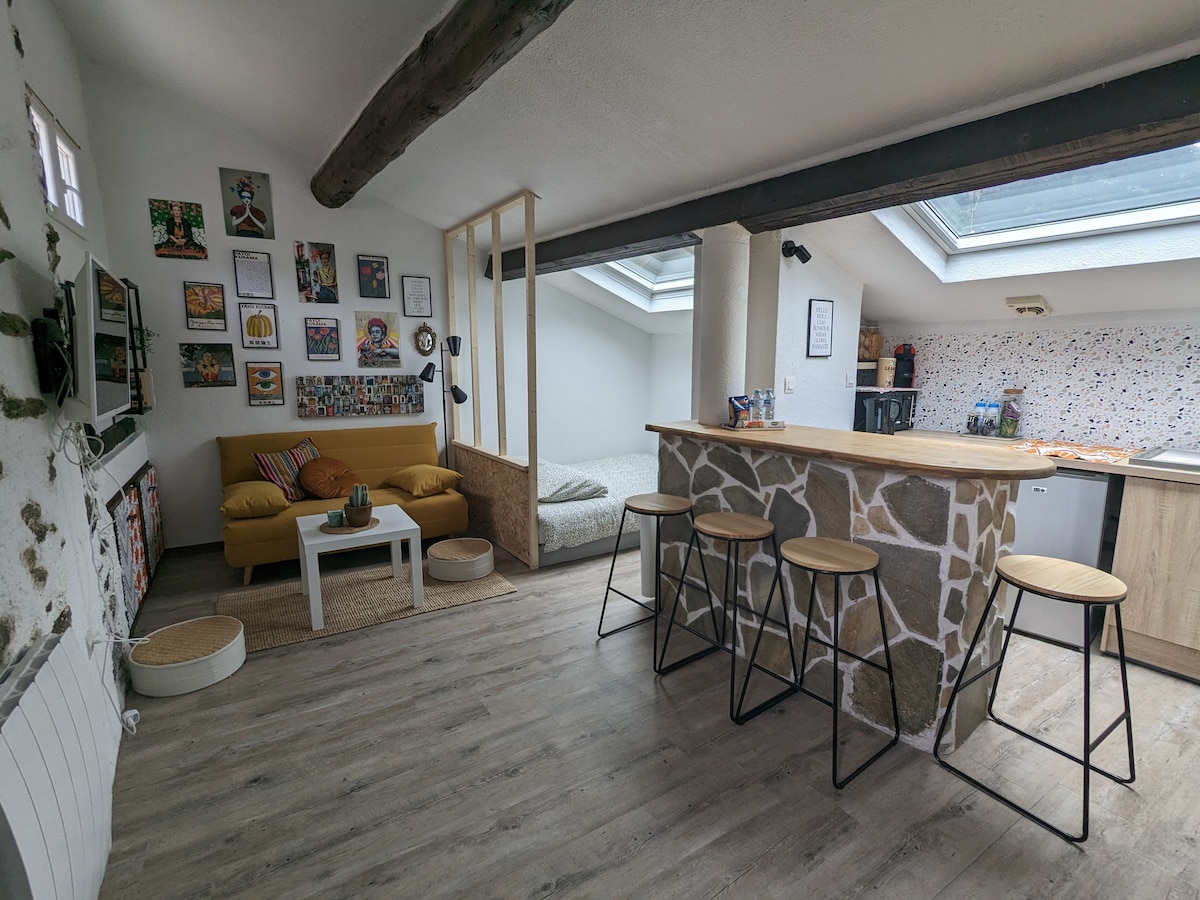 Mini studio 16 m² warm atmosphere, ideal for a couple, fully renovated, new sofa bed. Equipped kitchen, coffee maker, kettle, microwave. Fondue machine and raclette machine Coffee, tea, sugar available on site. Shower room with shower gel and shampoo SHEETS and TOWELS INCLUDED Our laundry is washed at 90 degrees. Guests are asked to clean as it is not charged and to remove the sheets and duvet cover and tidy the apartment as when you arrived