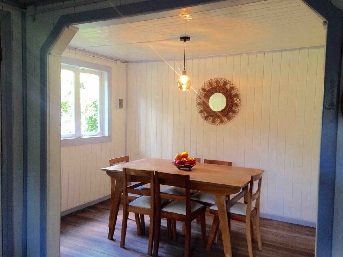 Disfruta del encanto de esta casa de dos pisos ,construida en los 60 s y de su maravilloso entorno repleto de árboles y vegetación de la zona. Excelente ubicación , cerca de la playa grande y de la plaza principal. Cuenta con wifi , aire acondicionado y calefacción (split) y convector eléctrico para los días fríos. Además , tiene parrilla , mesas y sillas de exterior para disfrutar de un asaito bajo los árboles