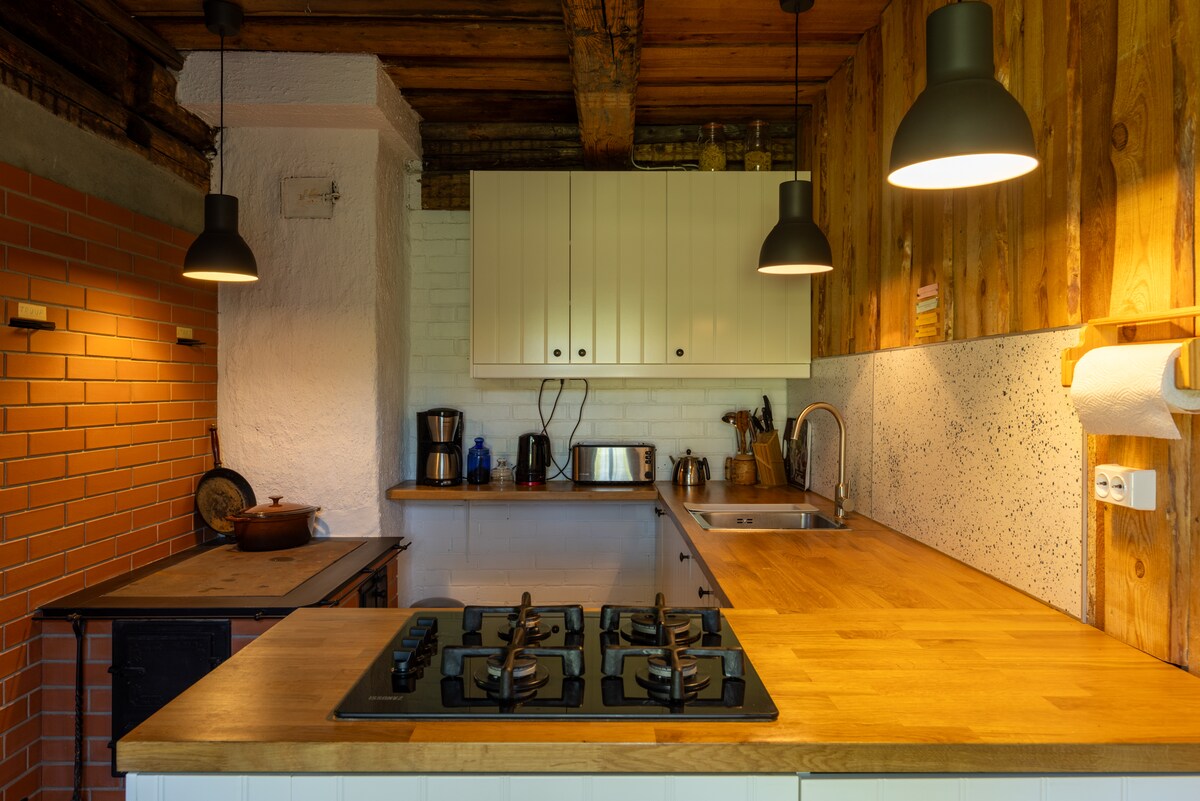 Our cozy country home under old oaks offers the perfect rustic charm and modern comfort. A fully equipped kitchen, a warm fireplace and a spacious living room create a relaxing atmosphere. The bedroom is designed with wide mattresses. The sauna has a hot tub (without a bubble system) with quickly heated well water and relaxing music. In winter, enjoy a crackling fire and in summer, discover the nearby hiking trails. Ideal for a family vacation or a romantic weekend!