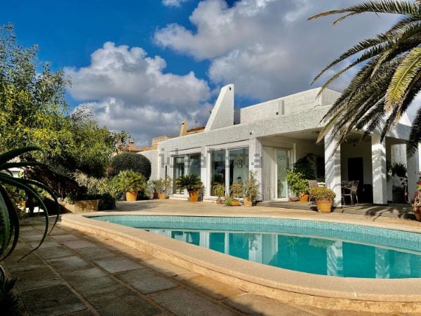 Exquisite villa in modern Bauhaus style: - 6 spacious double bedrooms - 4 of them with private bathroom, 2 share a bathroom - Impressive 23-meter long pool with diving board (up to 3.8 meters deep) - Absolute privacy, quiet location at the end of a cul-de-sac, adjacent to a nature reserve - Famous Es Trenc beach with Caribbean flair just 500 meters away - Restaurants, shops, bakery and pharmacy within walking distance Approved for vacation rental (license number: ETV/14932)