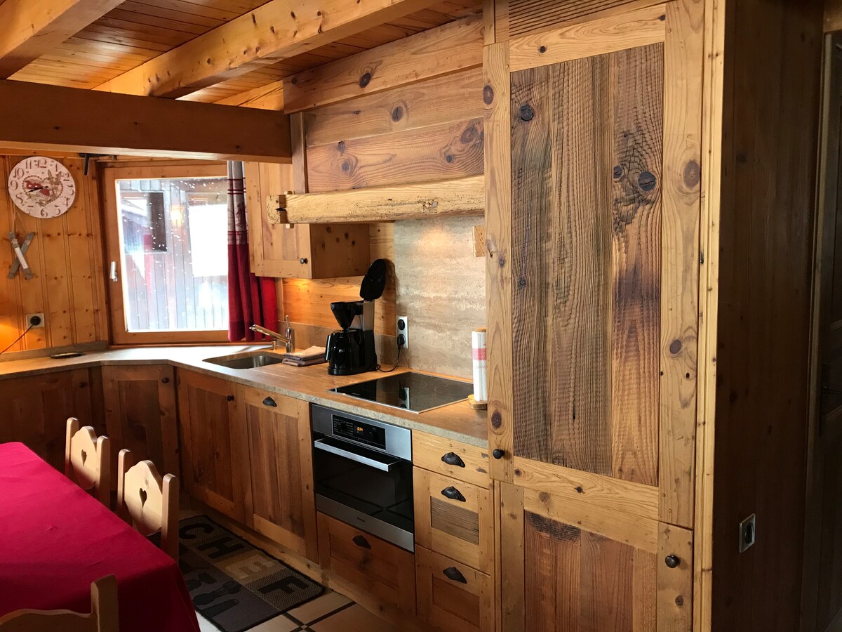 New apartment on the ground floor of a traditional 1673 chalet, 1650 m above sea level, private parking in front of the chalet, free shuttle 50 m away, 4 beds, fully furnished and equipped kitchen and dining area, panoramic view of the surrounding peaks. The sleeping area includes a double bed, a pull-out sofa bed with separable bed bases, storage, flat-screen TV. Bathroom with sink and shower, separate toilet. Ski locker, outdoor area. Looking forward to hosting you