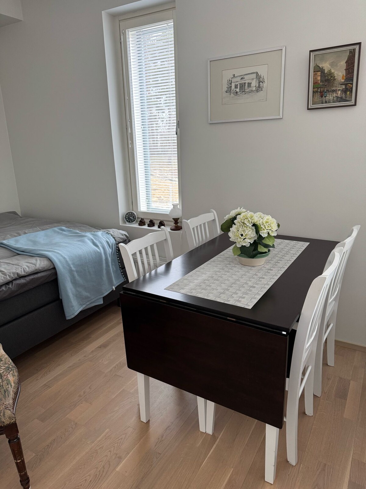 Studio apartment on the 2nd floor of an apartment building, built in 2018. There is an elevator in the house. The apartment has a 160 cm wide double bed. The rent includes sheets and towels. Only fragrance-free products are used in cleaning the apartment and washing the sheets. Detergents are also odorless. The apartment is located near Vanajavesi, close to good outdoor and cultural opportunities. Railway station 800 m Commuter store 300 m Verkatehdas 300 m Downtown 500 m