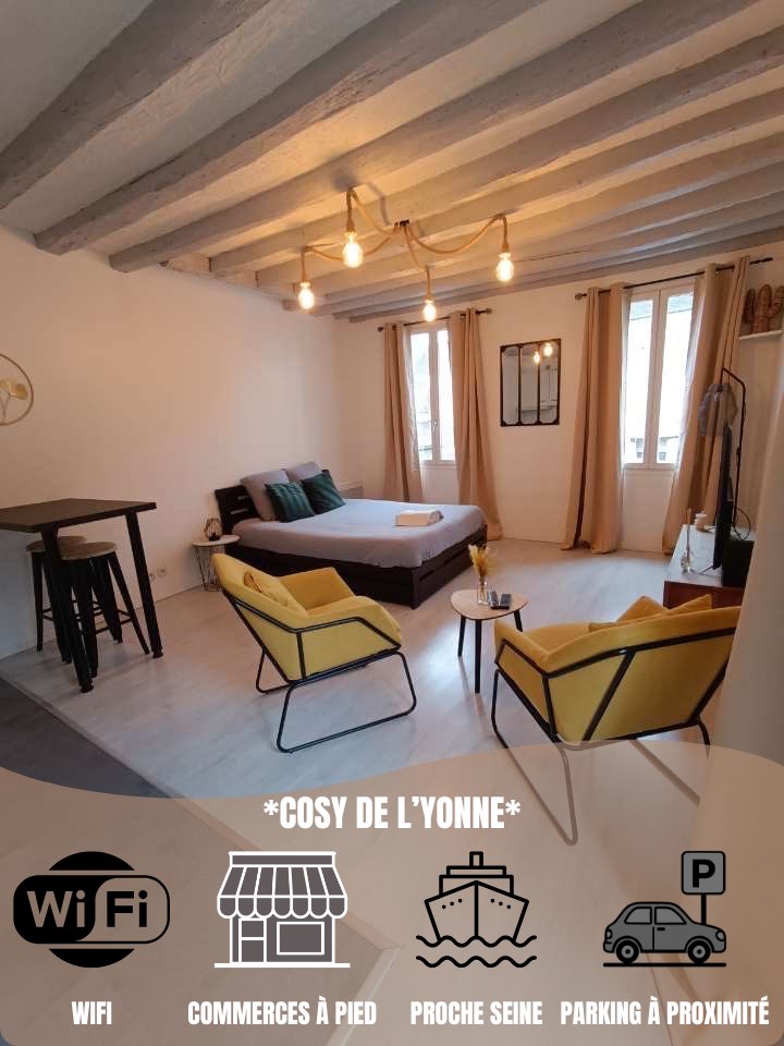 Enjoy a stylish experience. Located in the city center, accessible by transport and close to all amenities, the apartment offers a prime location. It is a central point between the cities of Fontainebleau, Melun, Provins and Sens. Paris is accessible by train in less than an hour. At the confluence of the Seine and the Yonne, enjoy walks along the waterfront. The city is also known for being the site of a Napoleonic battle.