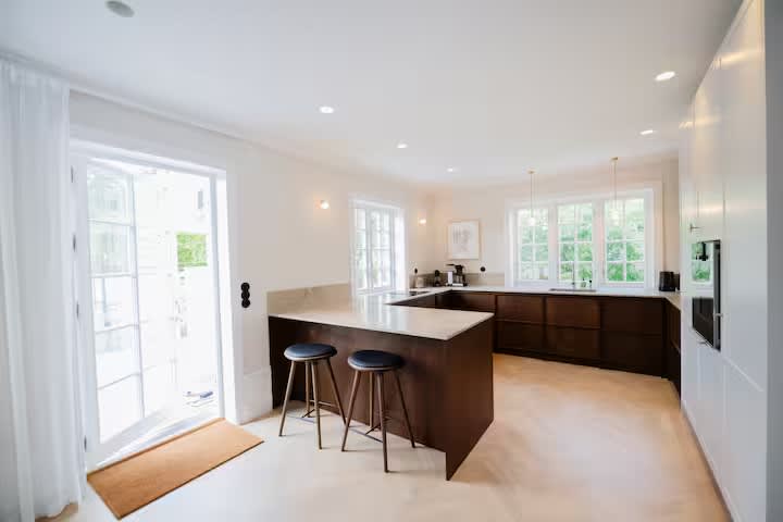 Quiet forest villa with lake views, 25–45 minutes from Stockholm. At Villa WILHELM, wake to treetops and water, walk one minute to the lake or reach the sea in fifteen. Unwind in the outdoor jacuzzi, sauna or by the indoor fireplace. Sleeps 6 across three bedrooms (optional extra bedroom up to 8, fees apply). A playground is just 2min away. Sunlit decks, calm evenings and starry skies. Ideal for families and friends seeking a quiet, nature-filled getaway with modern comforts and an AC system.