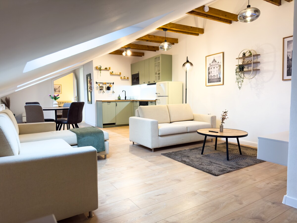 Enjoy a unique stay in a spacious duplex apartment, right in the historical center of Košice - just 3 minutes from St. Elizabeth's Cathedral. The apartment is located in a closed courtyard, so you can enjoy comfort, absolute peace and security throughout your stay. Cafes, wine bars, shops, monuments are just a few steps away - an ideal location to explore the city. A comfortable bedroom awaits you upstairs, and on the ground floor a living room with a fully equipped kitchen and a modern bathroom. I look forward to seeing you. Miriam