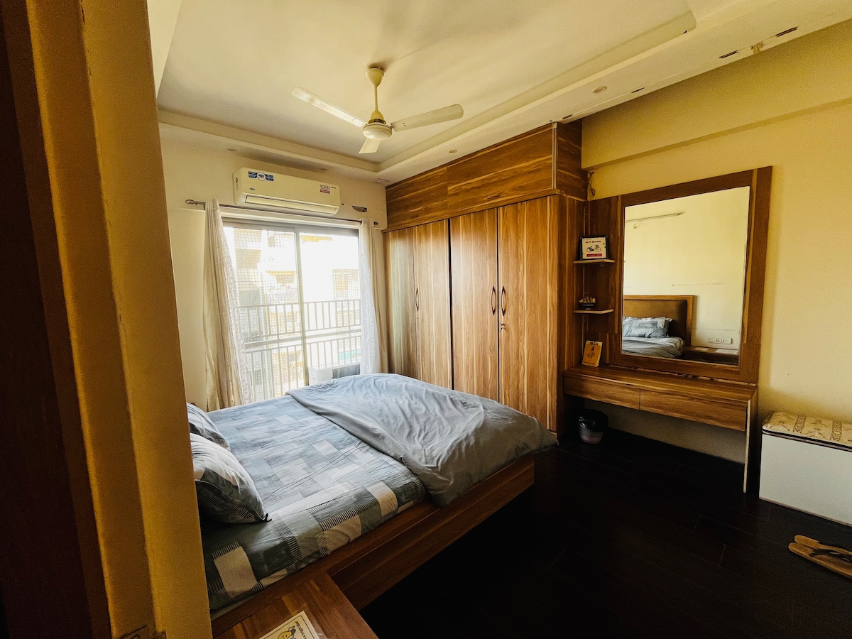 Welcome to your cozy studio apartment in Ahmedabad! Perfectly located with easy access to the airport (12 km), railway station (4.6 km), Narendra Modi Stadium (9 km), and the nearest metro station (1.5 km). Enjoy a comfortable stay with essential amenities, and your hosts live next door and are available anytime for assistance. Please Note: A valid ID is required to be submitted before check-in. Outside visitors are not allowed.