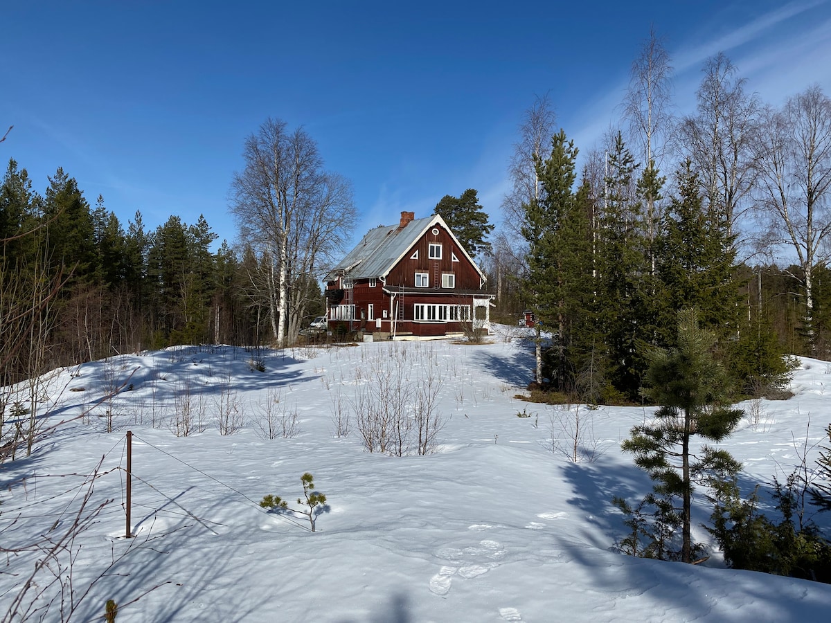 Country house with a ski slope right opposite. 20 min from Rally in Vännäs, Unforgettable nights under the Northern Lights, just 100 metres from the river, and endless tranquility! All of nature just for you! Skicenter 2 min, and supermarket. 20 min from Vännäs Rally Sweden WRC Rally Sweden 2026