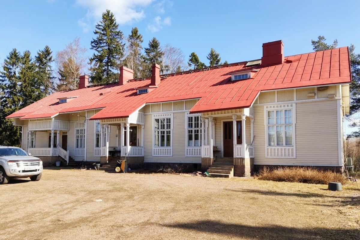 The yard building, with its own yard and terrace, is located in a rural area along the Kymijoki River, in the beautiful landscape of Siikakoski. This cozy place is just a 5-minute drive to services. Massive logs and wooden surfaces bring atmosphere to the upstairs bedroom and living room. Downstairs there is a small but well-equipped kitchen and a small bathroom/toilet. The parking space is in front of the door. During the summer, guests have access to the host's beach, where there is a swimming opportunity.
