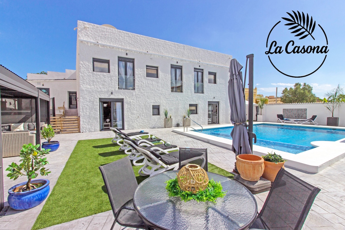 Diviértete con toda la familia en este alojamiento con estilo y totalmente equipada. Su amplia parcela de mas de 800 m2 y su gran Villa de unos 250 m2 en una única planta son el lugar ideal para pasar tus vacaciones. Dispone de parking privado para 2 coches, wifi, piscina privada, Muy cerca del Centro de Torrevieja y del Centro Comercial Habaneras, a sólo 10 minutos en coche del Centro Comercial la Zenia Boulevard y a tan sólo 2 kilometros de la playa más cercana.