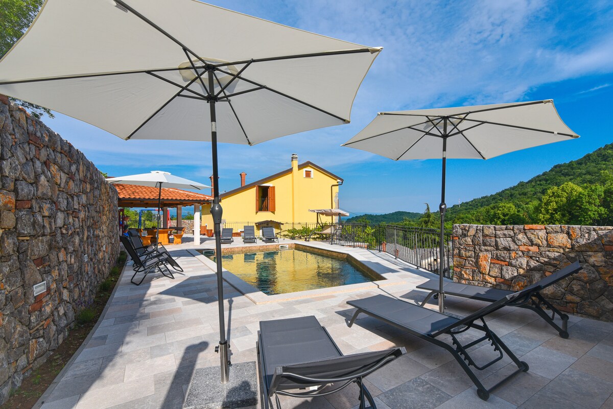 This hundred-year-old stone house, restored with love, is located on the slopes of Učka, near Opatija. Traditional architecture with stone and wooden details creates an authentic atmosphere, while the nature that surrounds it offers an ideal escape from the busy life. The house was completely renovated by the owner's own hands, including handmade furniture. Wood-burning fireplace adds to the comfort and warmth of the space. Outside pool surrounded by greenery, offers complete intimacy.
