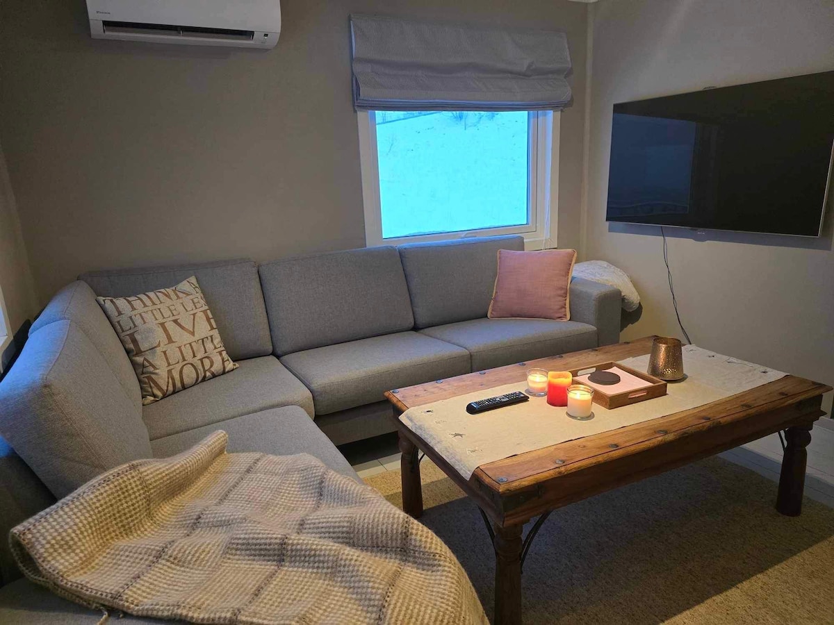 Unwind to this cozy and bright studio apartment in Tromsø. A perfect location to the central amenities of the city center with just 20 minutes walking distance or 5 minutes bus ride. Indeed a unique crash pad for touristing in Tromsø. It is a mini-retreat especially designed for you to come alone. Sit and gaze at the stunning view of the beautiful nature of the Paris of the North. Amenities: - Basic kitchen & dining essentials - Washing machine & towels - WiFi and TV