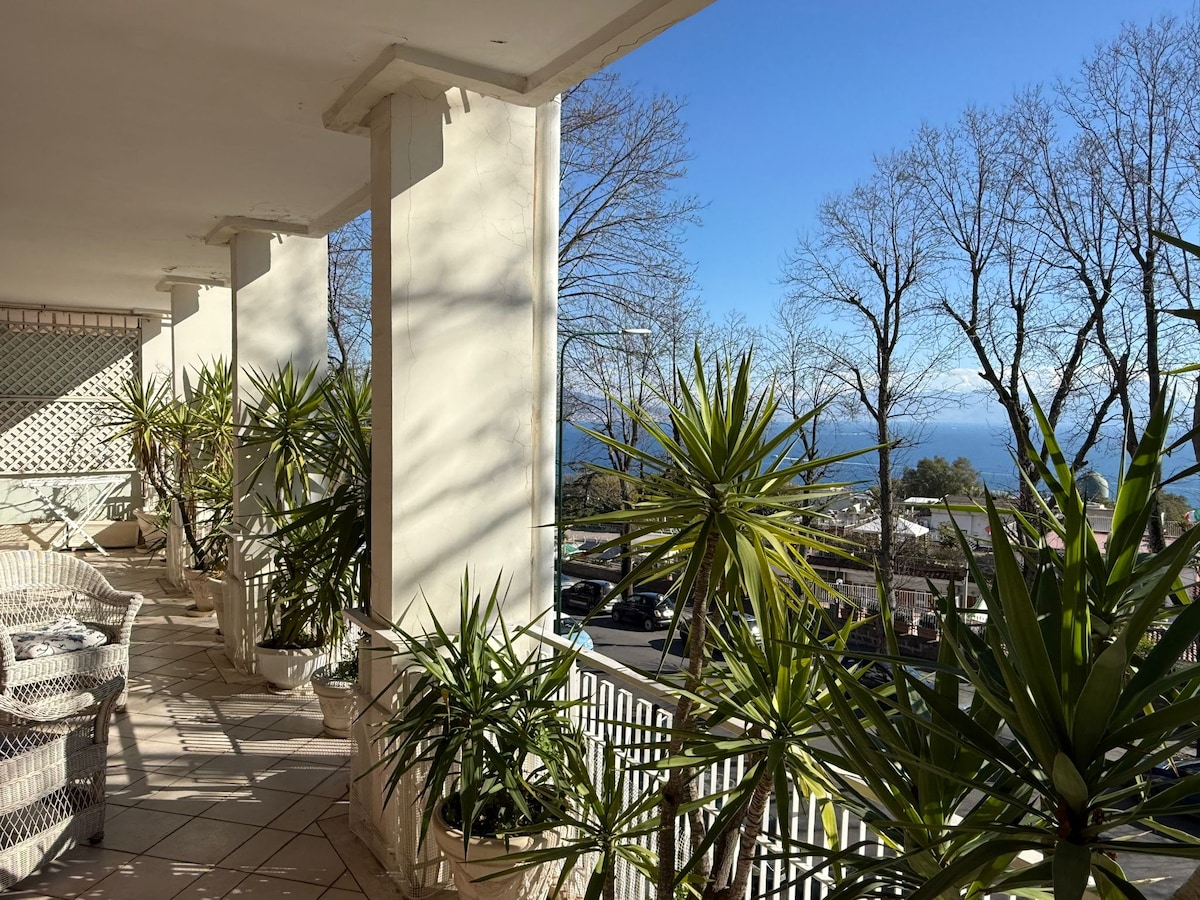 Recentemente ristrutturato in stile contemporaneo l'appartamento gode di una vista spettacolare sul Golfo di Napoli, dal Vesuvio a Capri. Posizionato all'ultimo piano di una villa storica con ascensore. L’attico si compone di un grande spazio living con cucina a vista, due camere matrimoniali, due bagni ed un terrazzo privato. Inoltre, gli ospiti potranno usufruire gratuitamente di un posto auto privato all'interno del cortile ma non custodito.