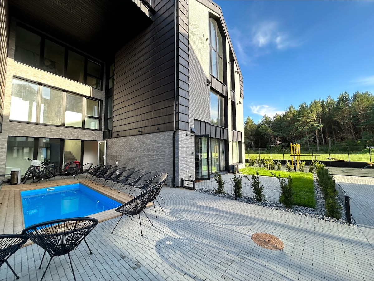 Exclusive house 150m from the sea ☀️ with green roof and cozy upstairs loft inspired by hobbit homes. Only 6km from Liepāja. The property is bordering the Baltic sea. Enjoy your holidays by the sea in a clean white sand beach. Sauna included. Outdoor bathtub for additional price.