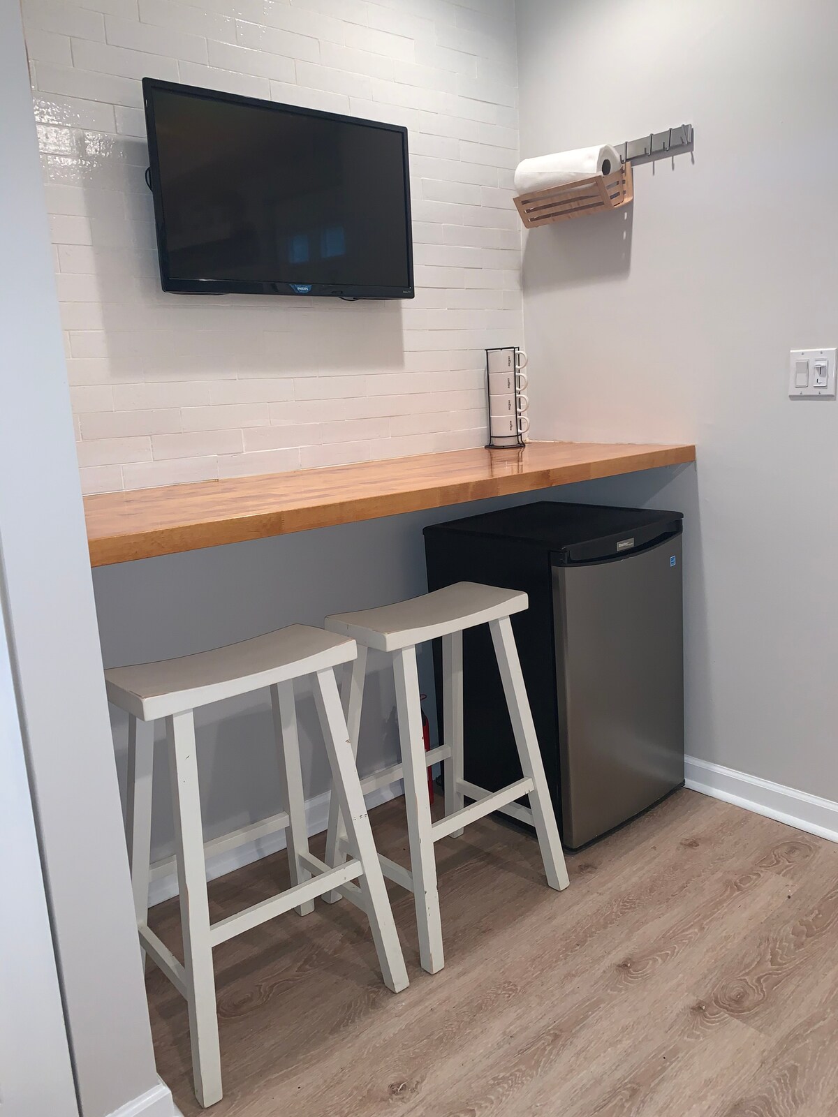 This meticulously curated Japandi-inspired studio is perfect for remote work or a peaceful retreat. The space features a cozy queen bed, small loveseat, and seating area. Enjoy high-speed internet, TV, and a writing desk for productivity. The suite includes a kitchenette with a fridge, microwave, and coffee maker. Located in a quiet, safe neighborhood, with access to a backyard fire pit for relaxation. Ideal for a calm, comfortable, and productive stay.