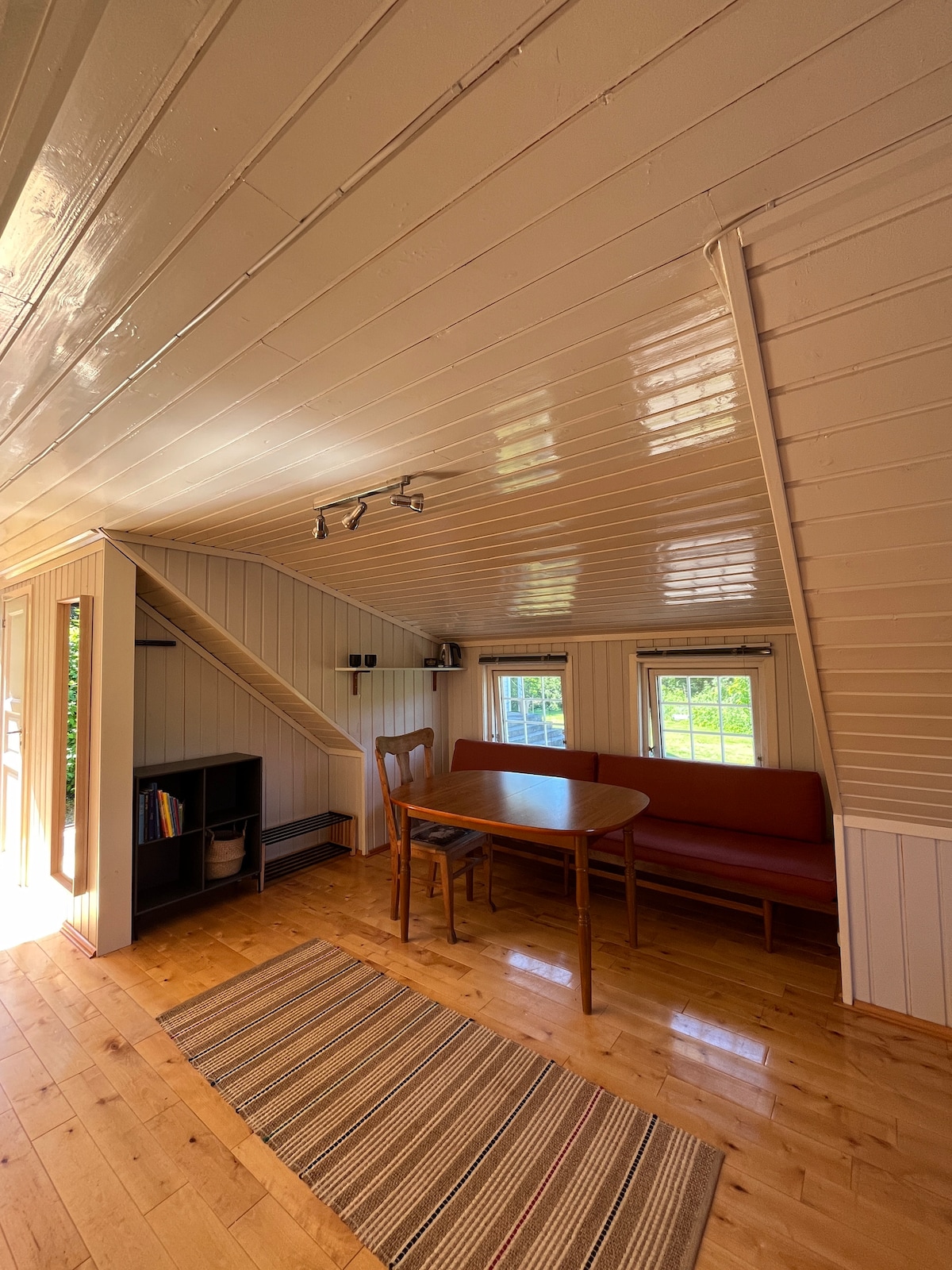 We rent out an annex/skipper's room that is located as a side building to the main house. Separate with private entrance and patio. Good standard with kitchen, bathroom, vestibule, living room and sleeping loft. Direct exit to sunny patio/garden with seating area, sunbeds and gas grill. Quiet and peaceful villa area with 300 m to the lake with great swimming areas, marina and the beautiful archipelago in Færder National Park. Possibility of agreement on rental of guest pass in local boat association.