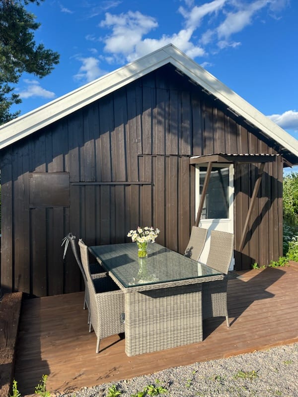 Simple and peaceful accommodation with a central location. Located in the garden of the main house hidden from the road. Can put in a travel bed for small children, and has a pouf for an extra bed. Three minutes to Bus that goes to Tønsberg/Hvasser/Verdens Ende. Five minutes to Tjøme Center, golf course, grocery store, bakery, cafes, skate rink, sports/training park health studio and library. Good hiking areas in the nearby. Access to air fryer, kettle and equipment for light meals